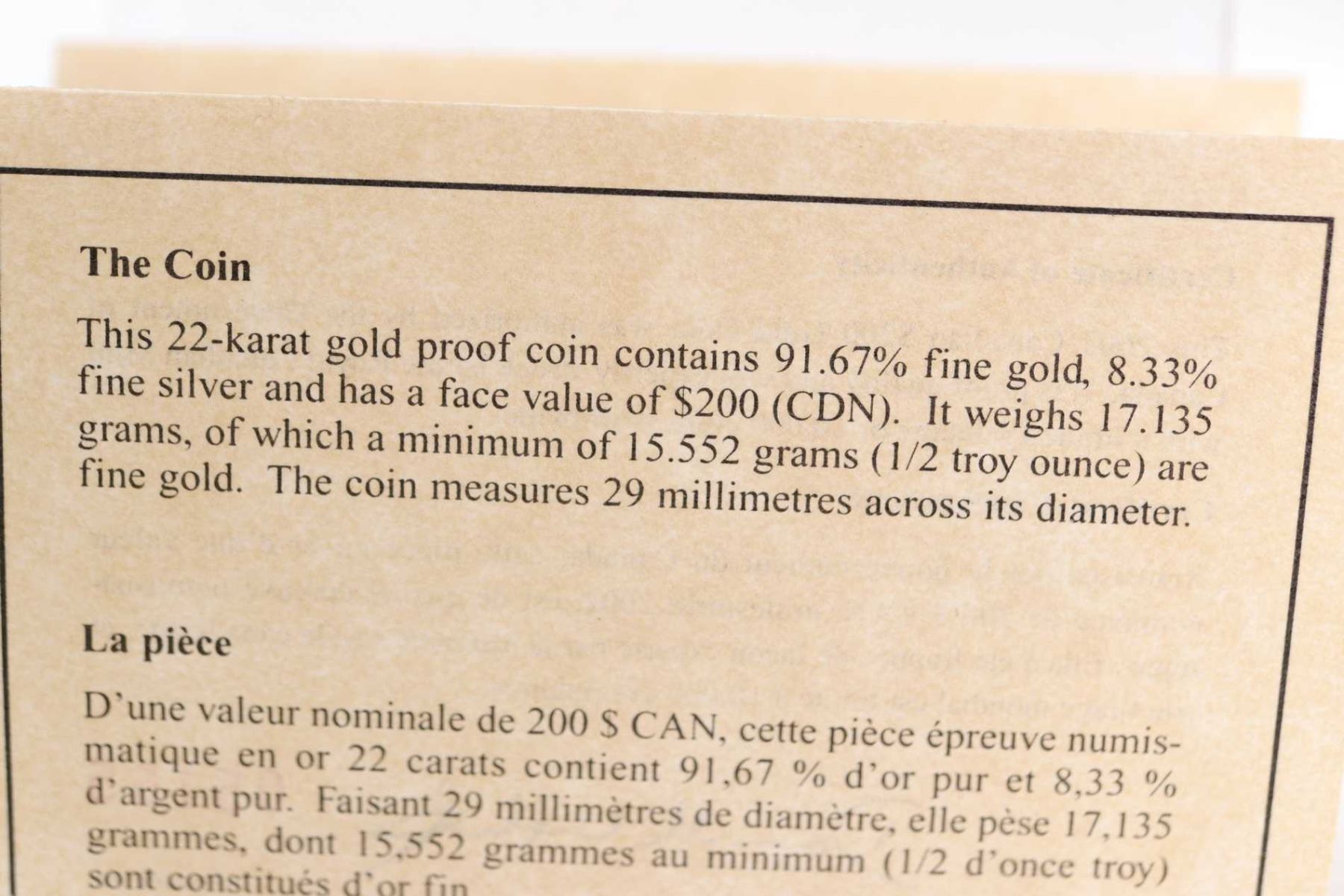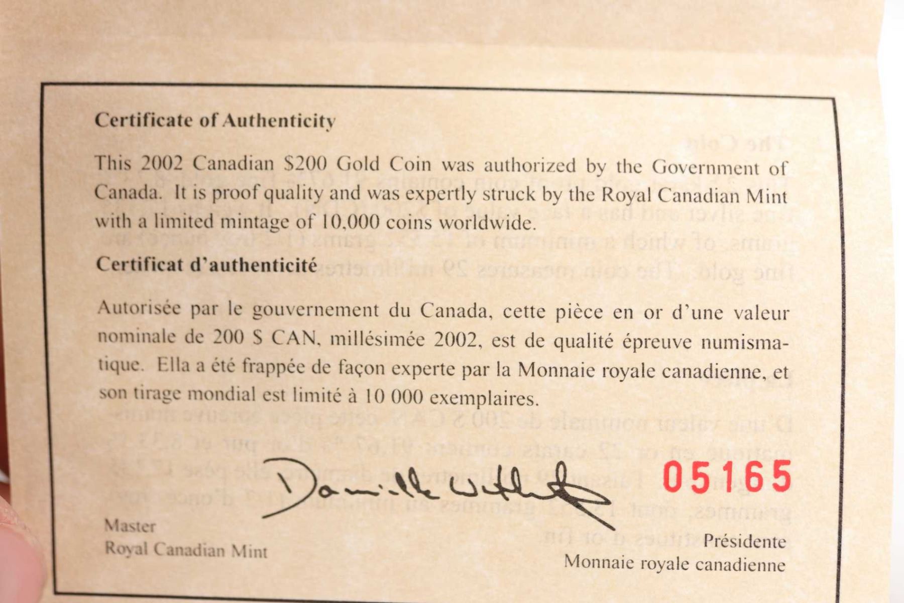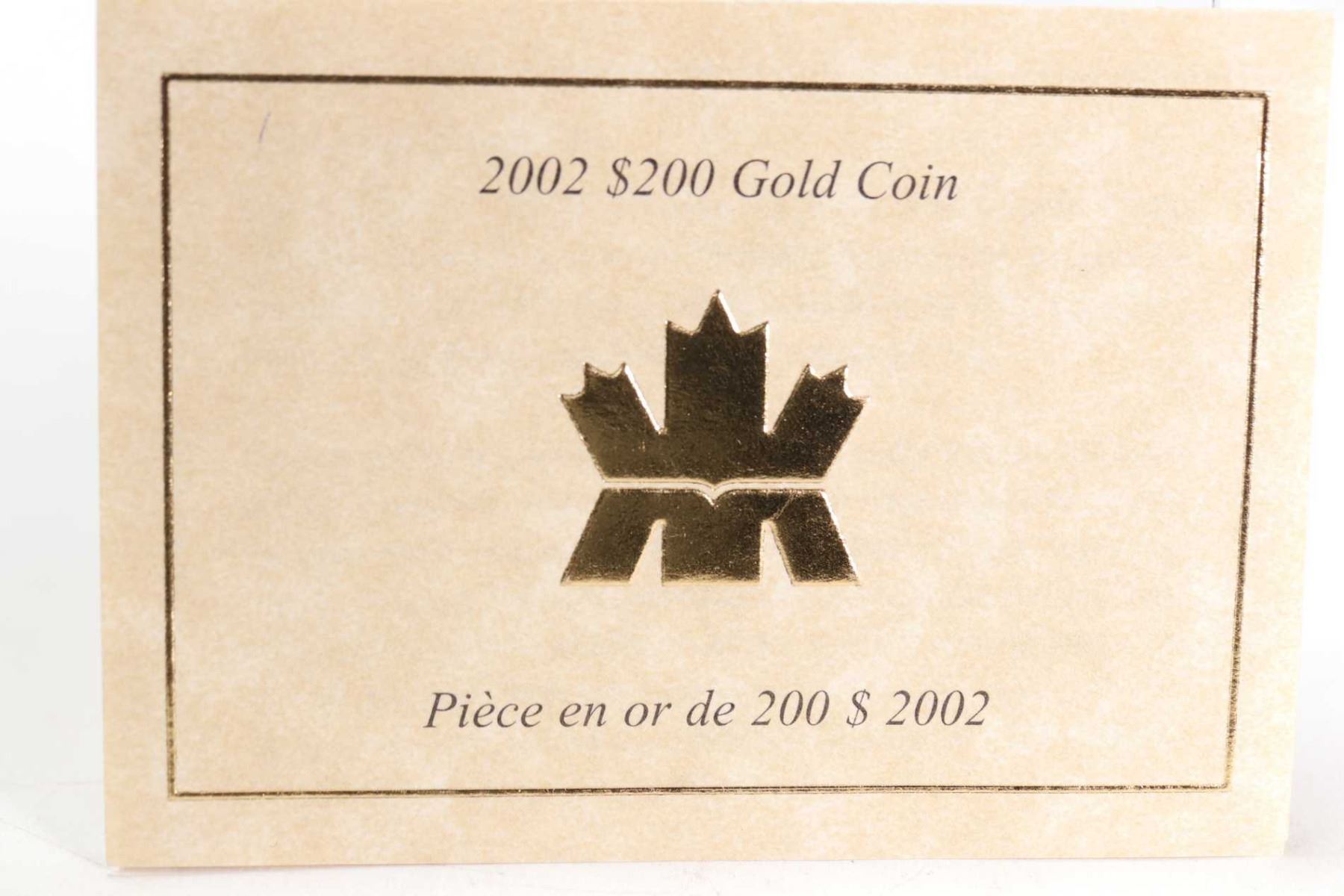 Canadian 2002 non-circulated $200 gold coin "The Jack Pine" by artist Tom Thompson, 17.135 grams of 22 kt gold