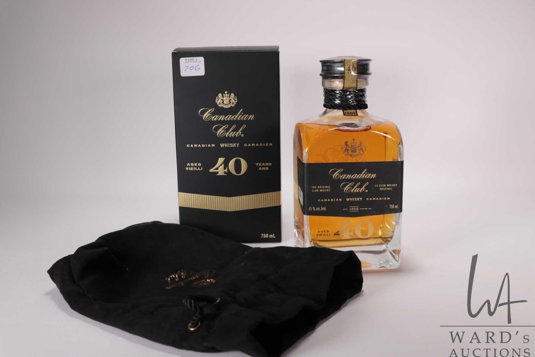 Canadian Club/ 40 Years/ Canadian Whisky/ 750ml/45% ABV Note: Alcohol cannot be insured by any courier in Canada. Local pick up recommended. Canadian bidders only.