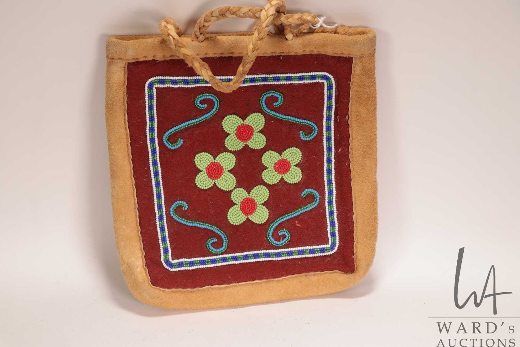 Canadian Indigenous purse with fringed edge, cotton lining and beaded decoration