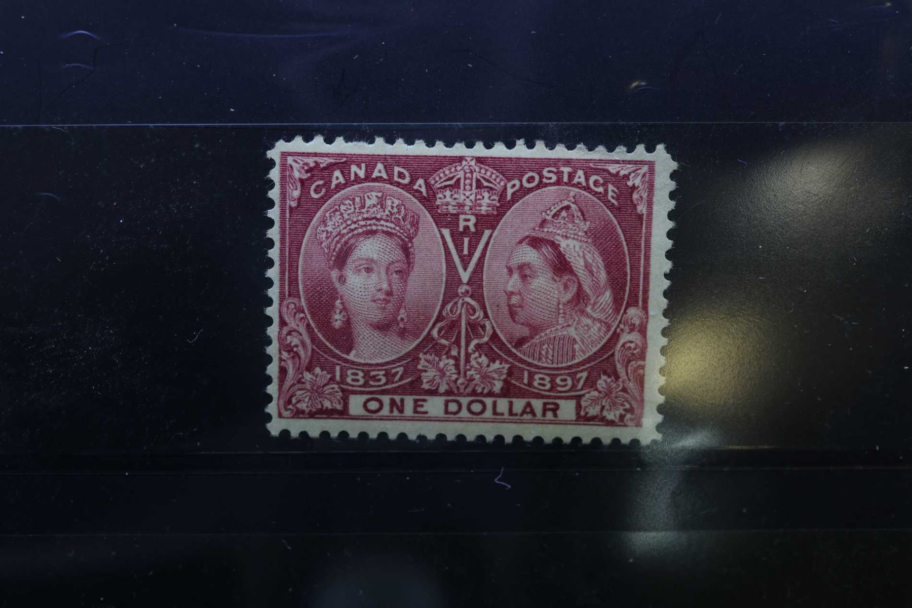 Canadian one dollar postage stamp in very fine condition featuring Queen Victoria 1837 and Jubilee 1897