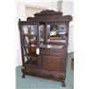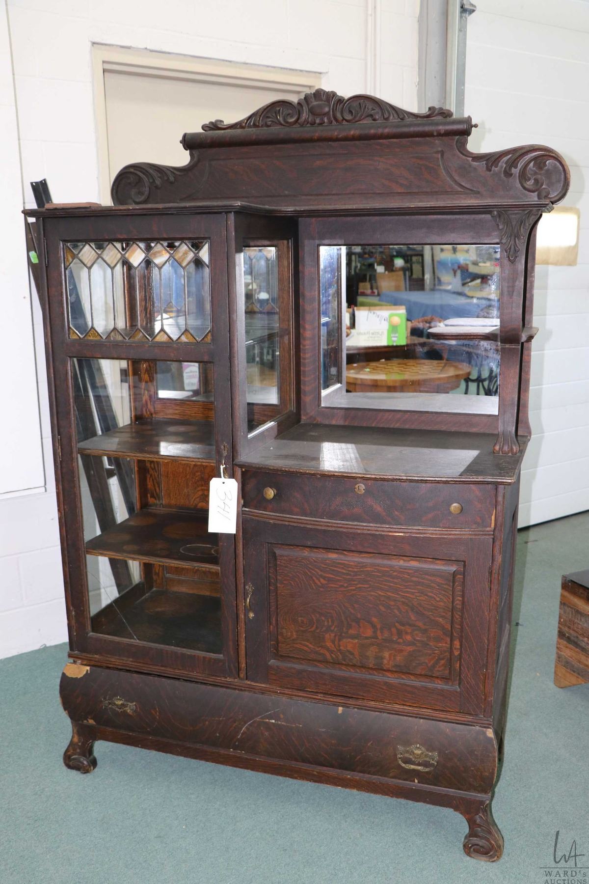 Canadiana side by side with single glazed door with leaded top section, lined drawer and mirrored backboard, 73" in height