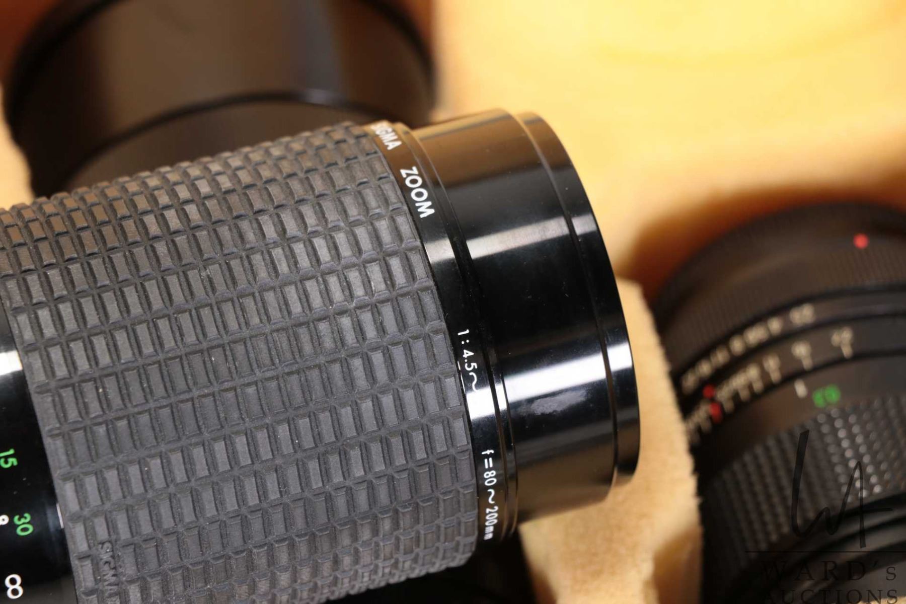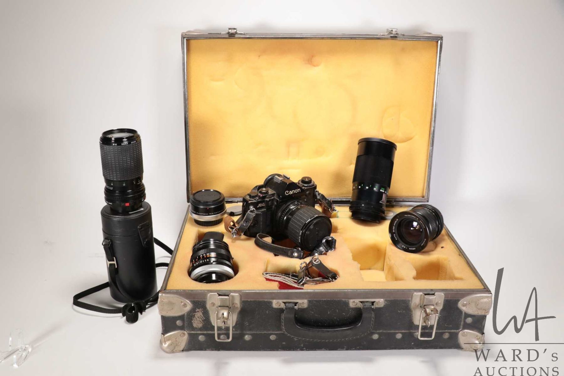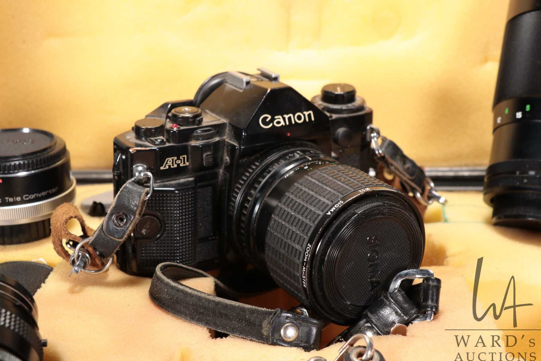 Cannon A1 35mm camera with lens plus a wide angle lens, 50mm lens, Sigma zoom lens and fitted hard case