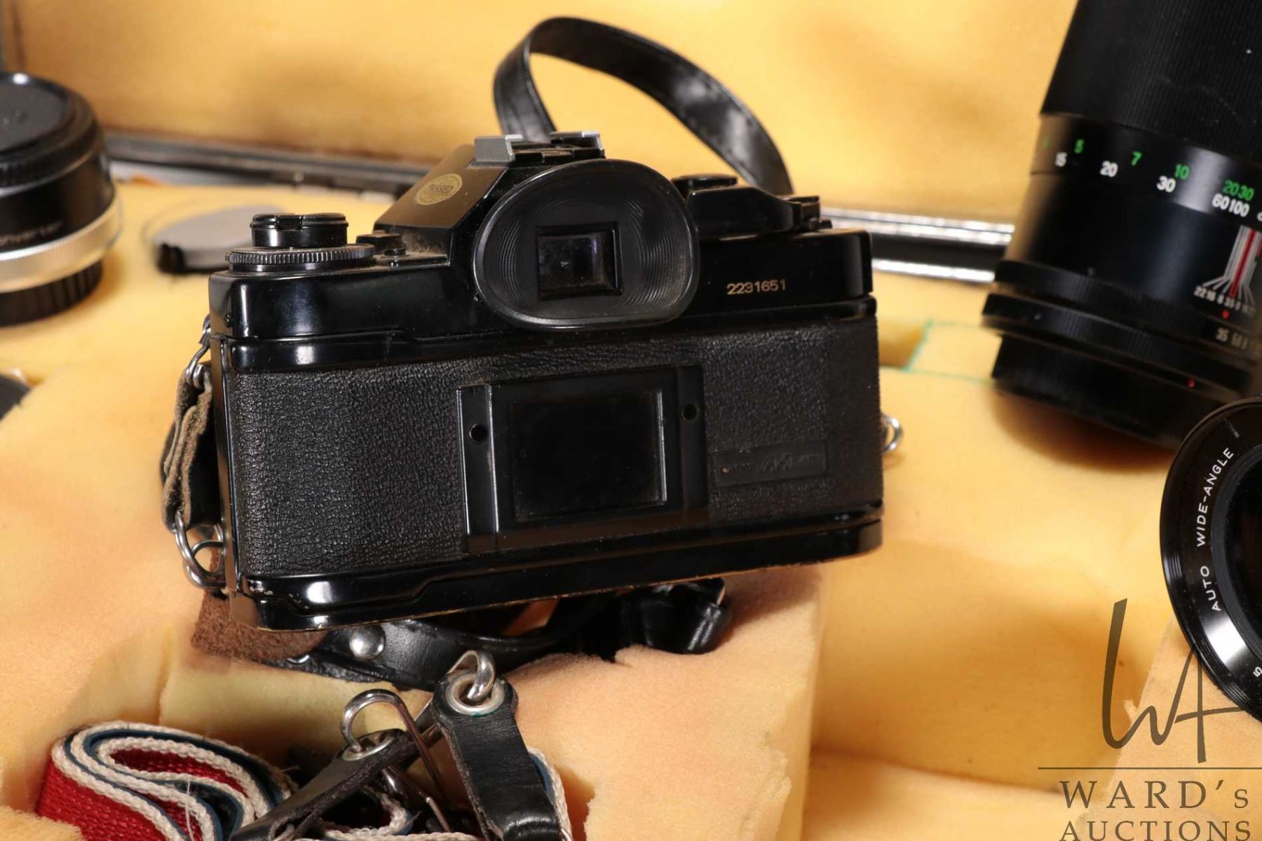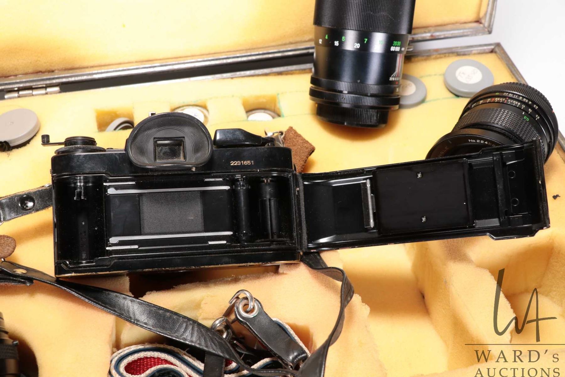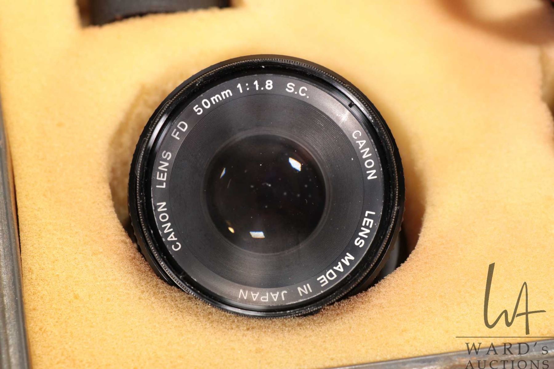 Cannon A1 35mm camera with lens plus a wide angle lens, 50mm lens, Sigma zoom lens and fitted hard case