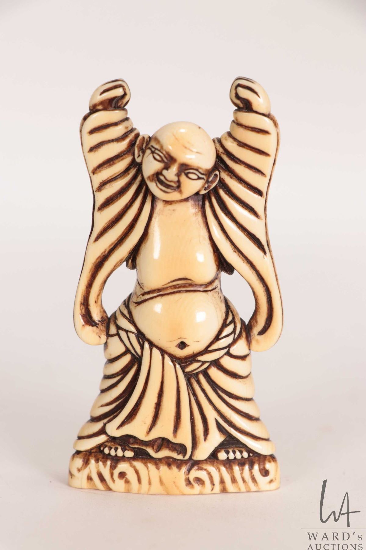 Carved ivory Jolly Hotei figure 3 1/4" in height. Can not be shipped outside of Canada. Canadian buyers only.