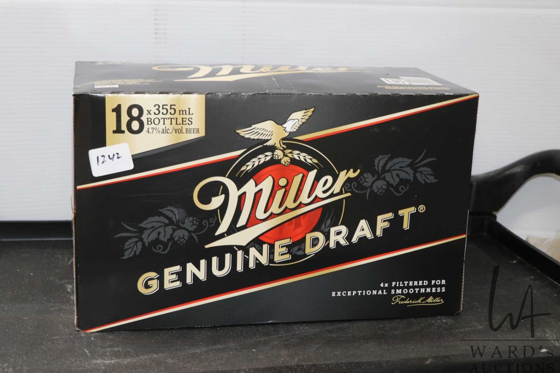 Case of Miller Genuine Draft Bottled Beer/ 24 count X 355ml/ 4.7% ABV Note: Alcohol cannot be insured by any courier in Canada. Local pick up is recommended. Canadian bidders only.