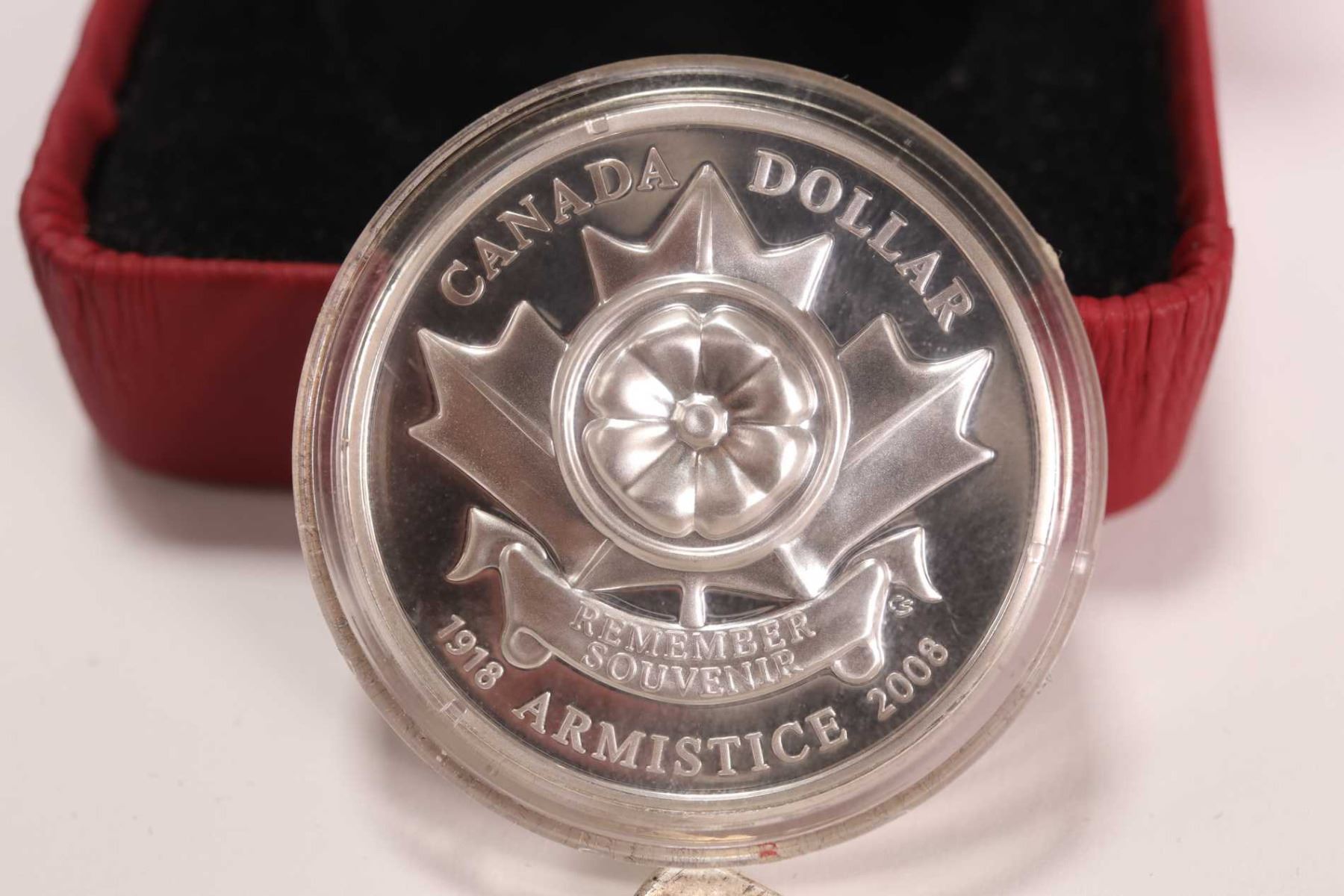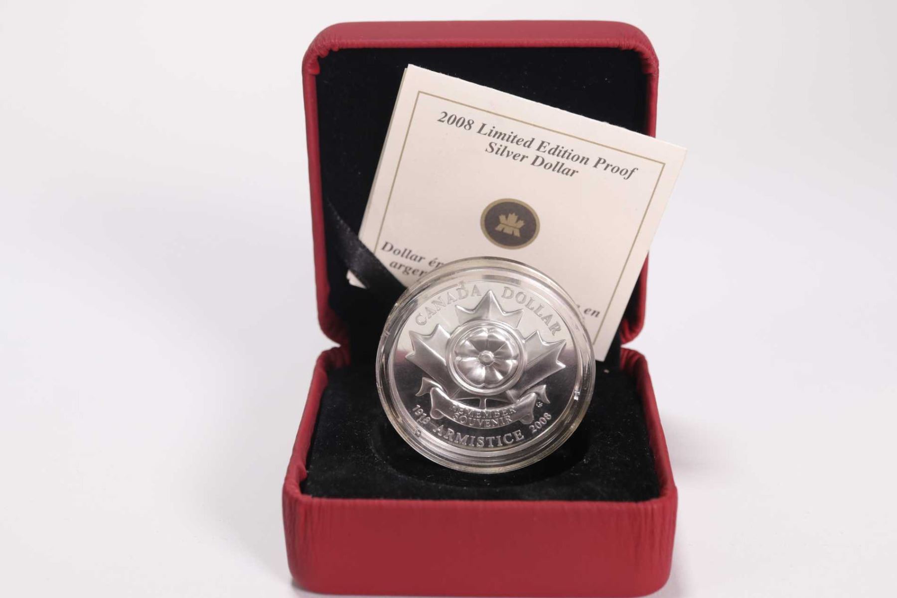 Cased Royal Canadian Mint collector coin 2008 limited proof .925 sterling silver dollar 30 gram "90 Years of Remembrance-The Armistice" coin numbered 37711/5000