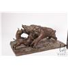 Cast bronze sculpture of a wild boar and hunting dogs, 4 1/2" X 10 3/4" and 6 7/8", artist signed