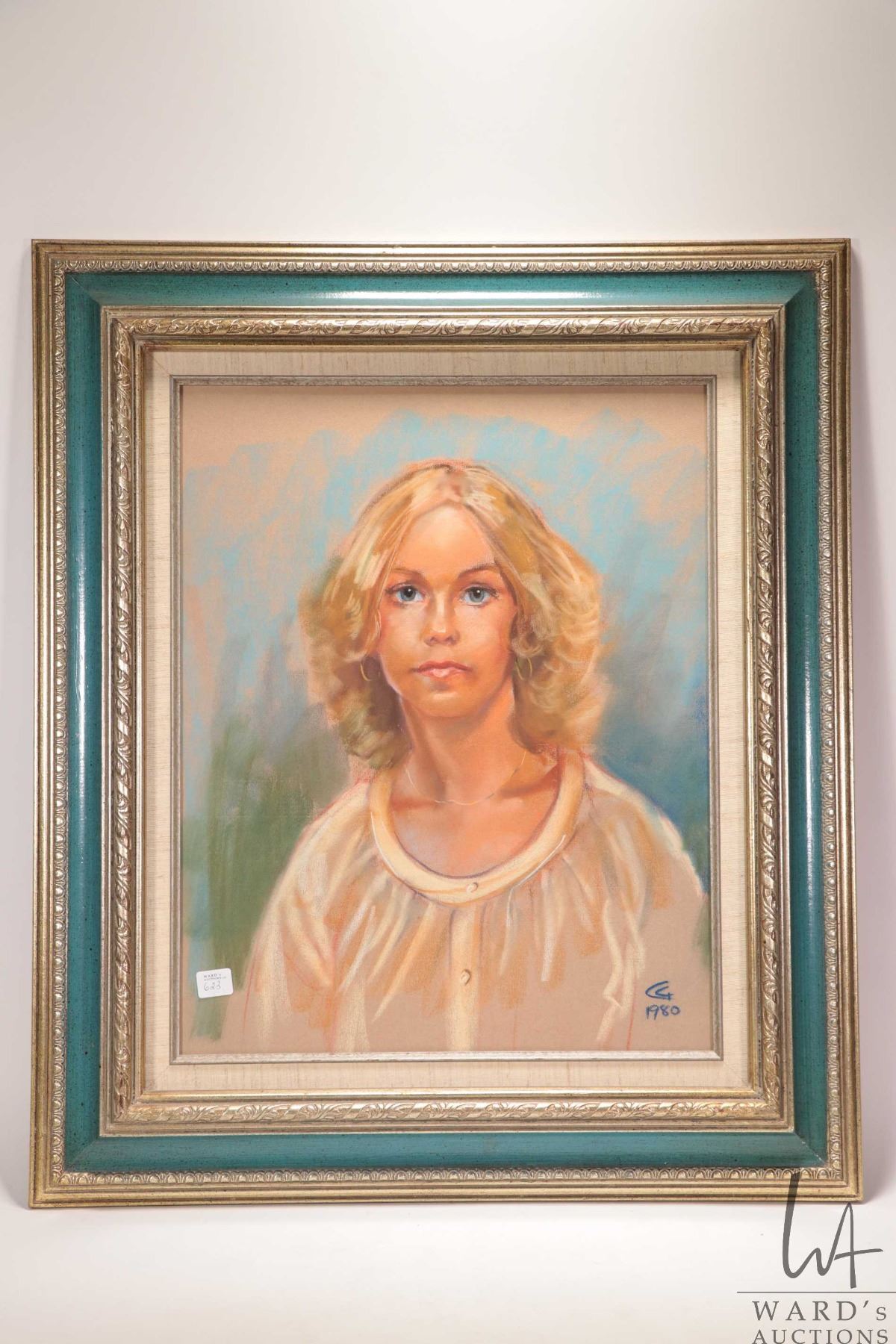 Charles Gannon framed original pastel portrait, titled on verso "Eva Weir" 1980, 19" X 16"
