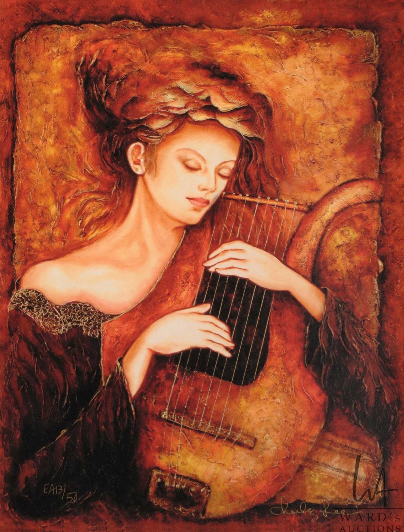 Charles Lee, framed limited edition giclee print titled " Mythical Passion", gold pen signed by artist and numbered EA 13/50, overall dimensions 30" X 26 1/2"