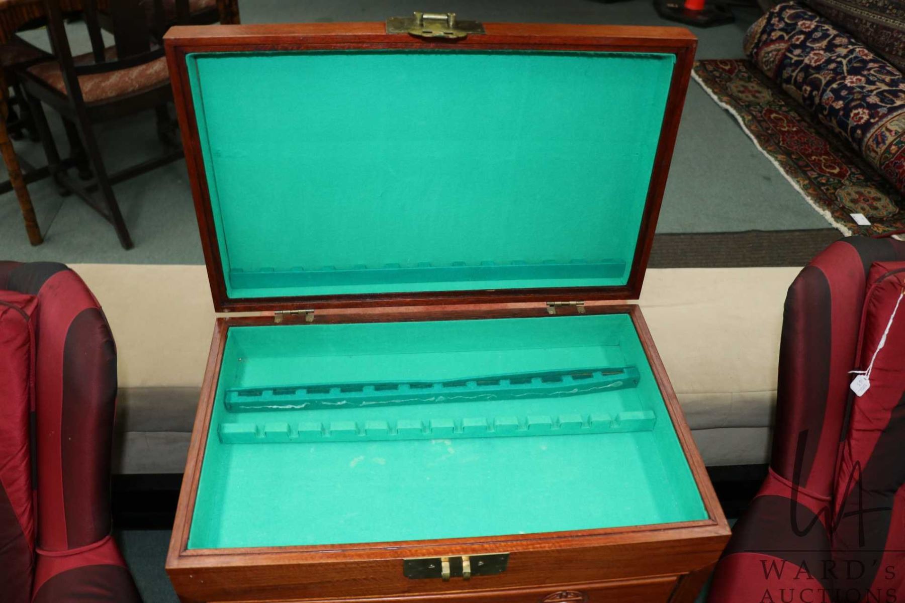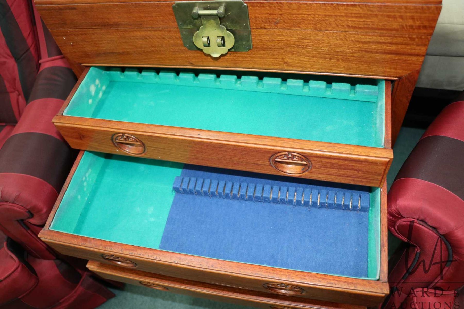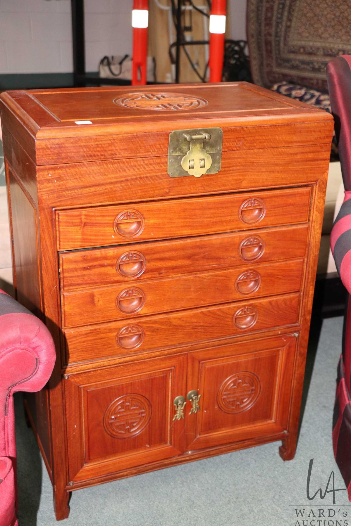 Chinese carved rosewood flatware cabinet with flip top, four drawer and two doors, 32" H X 22" W X 14" D