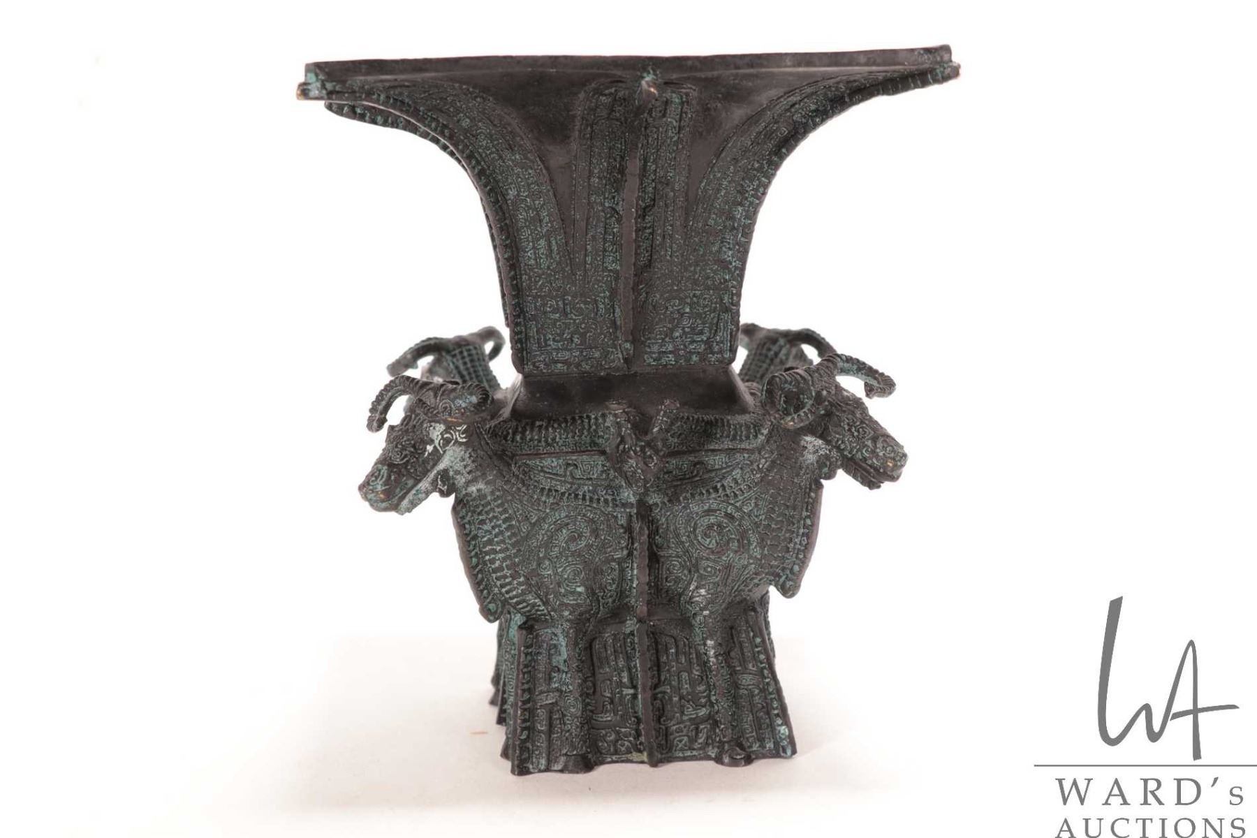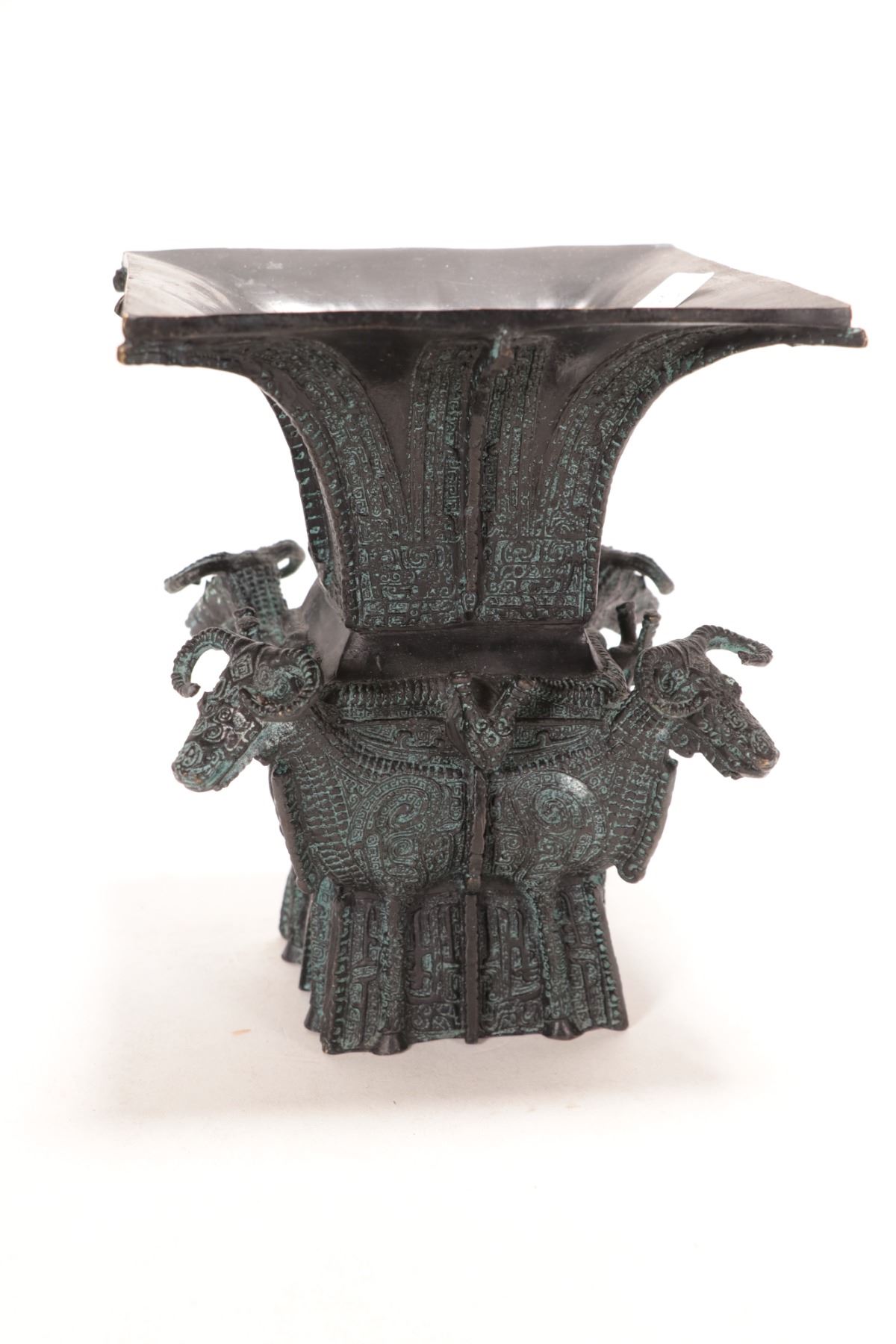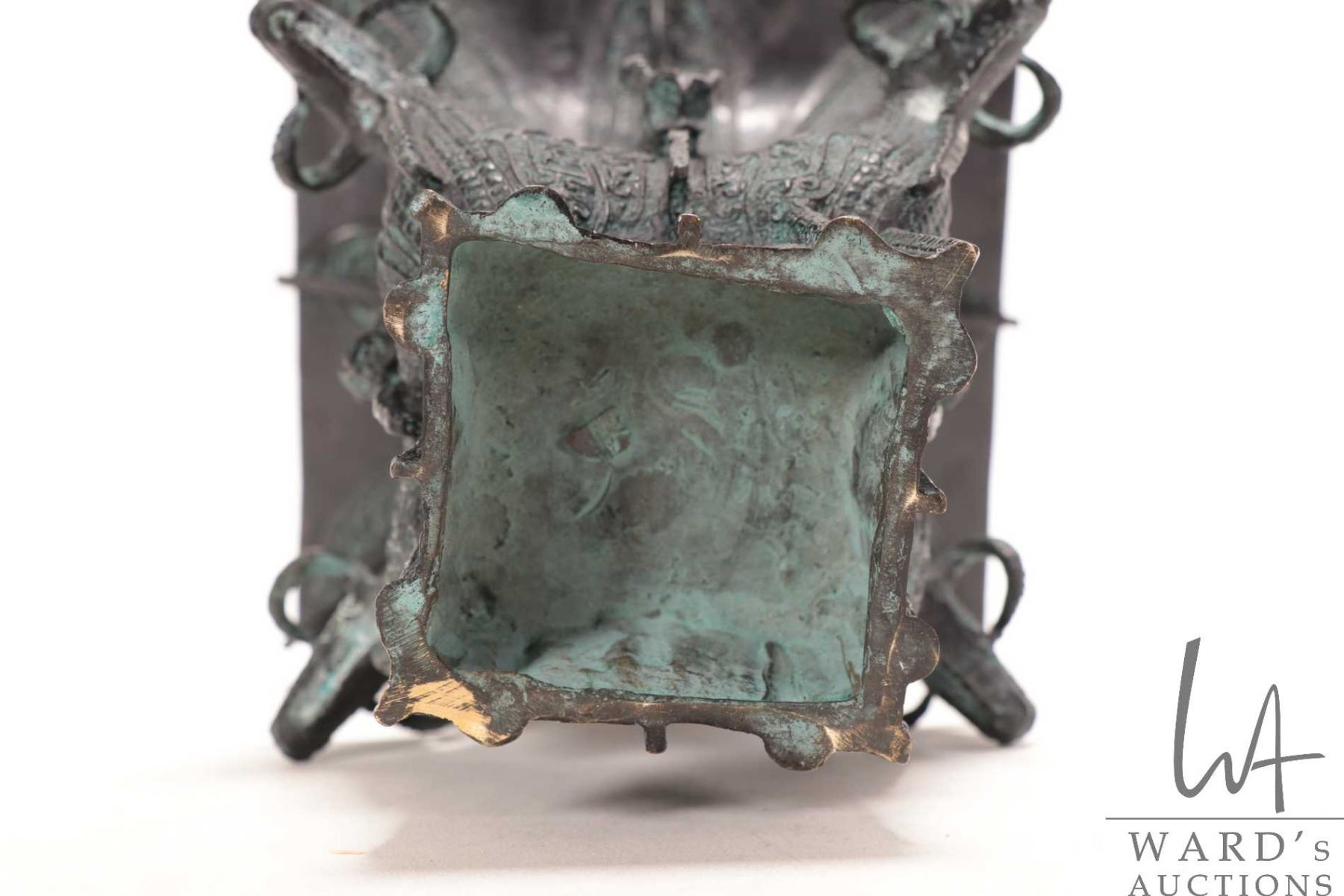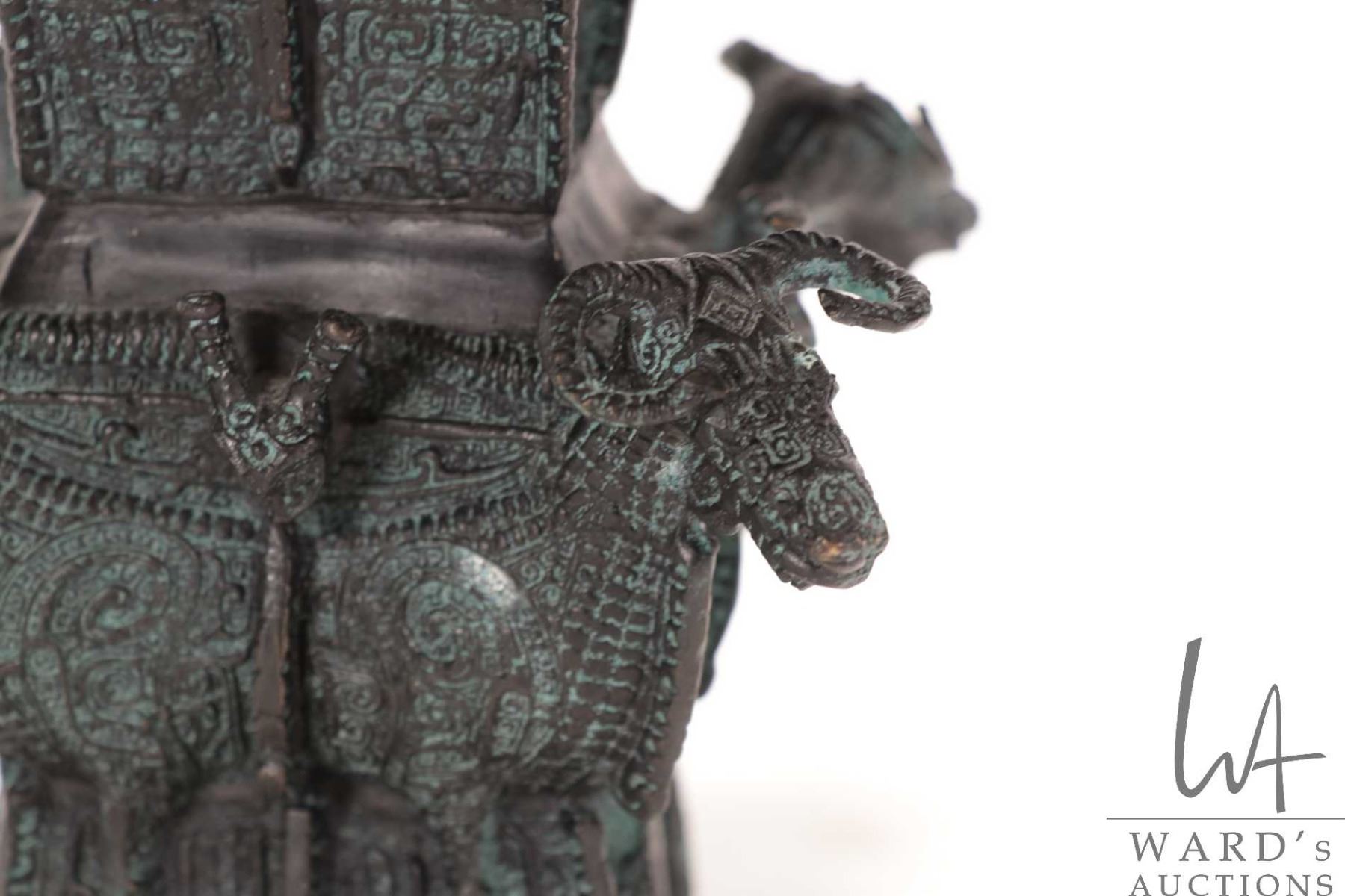 Chinese four ram head Hu Shang style square zun ritual bronze pouring vessel