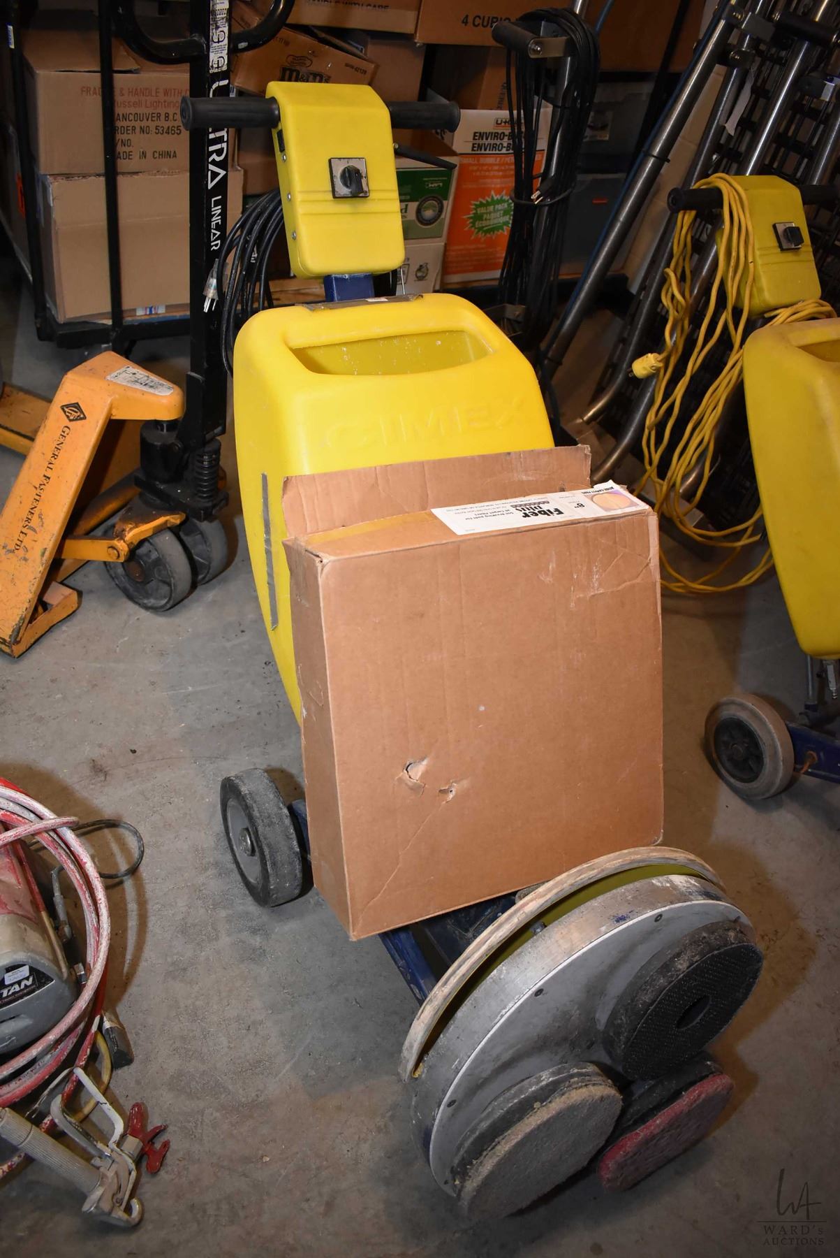Cimex floor cleaning unit with partial box of pads, appears to be working