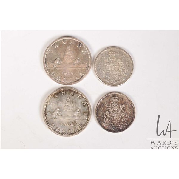 Twelve Canadian 50 cent coins including 1940, 1951, 1953, 1959, 1961, 1963 X 2, 1964, 1965 X 2 and 1966 X 2