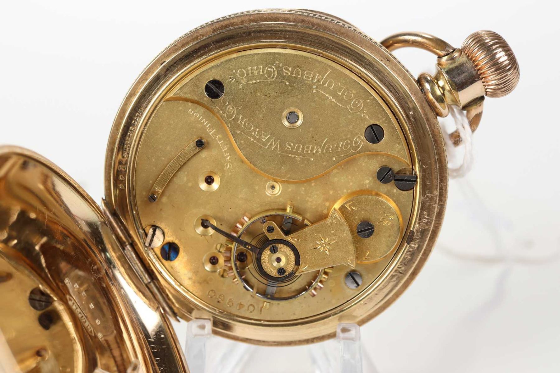Columbus size 18, 11 jewel pocket watch. Serial No.104960, dates to 1887, full gilt plate stem wind
