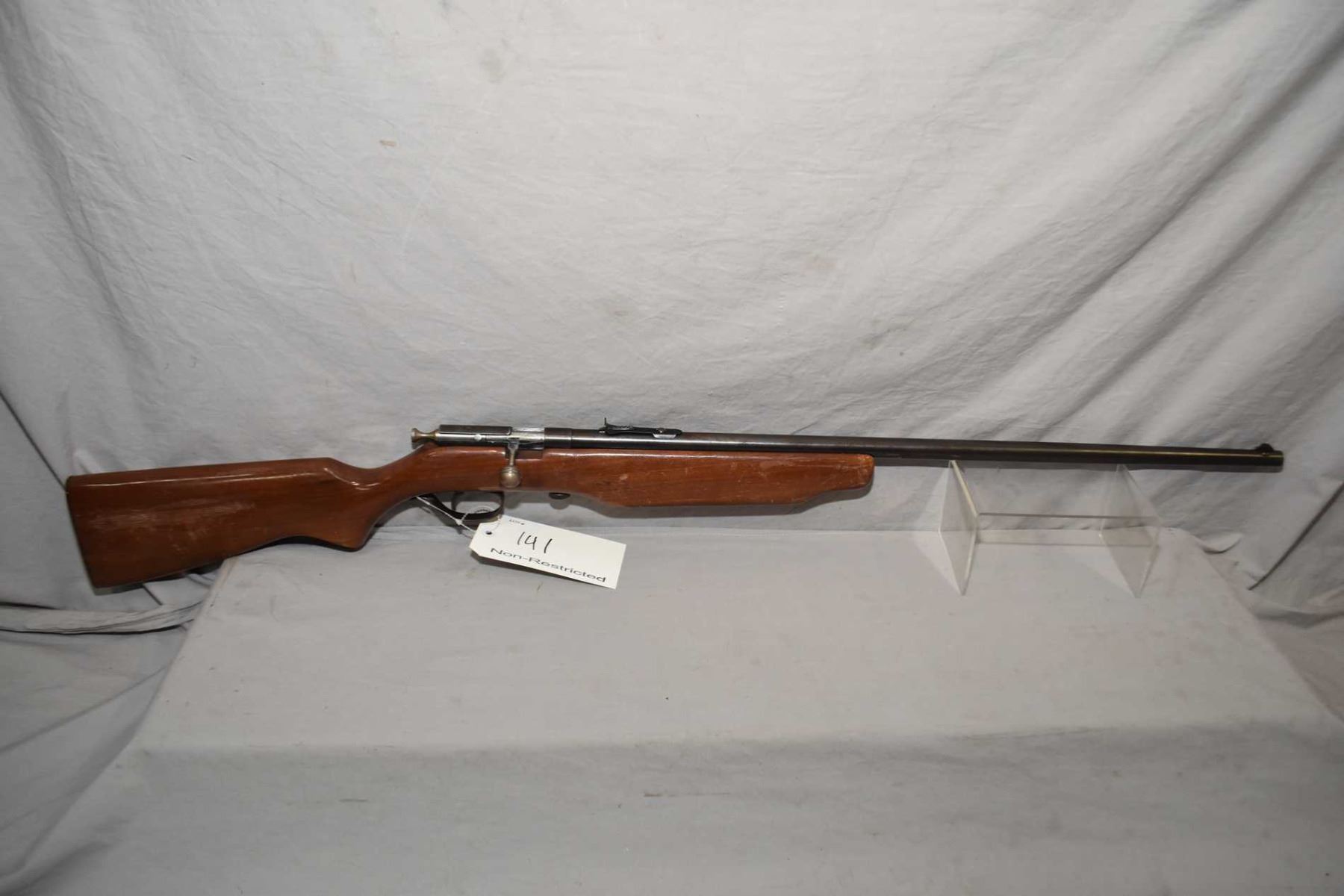Cooey Model 75 .22 Rimfire Cal Single Shot Bolt Action Rifle w/ 27" bbl [ fading blue finish, more in carry areas, barrel sights, pistol grip stock with sling holes, metal butt plate, various marks and scratches to wood and metal ] Ser # Nil