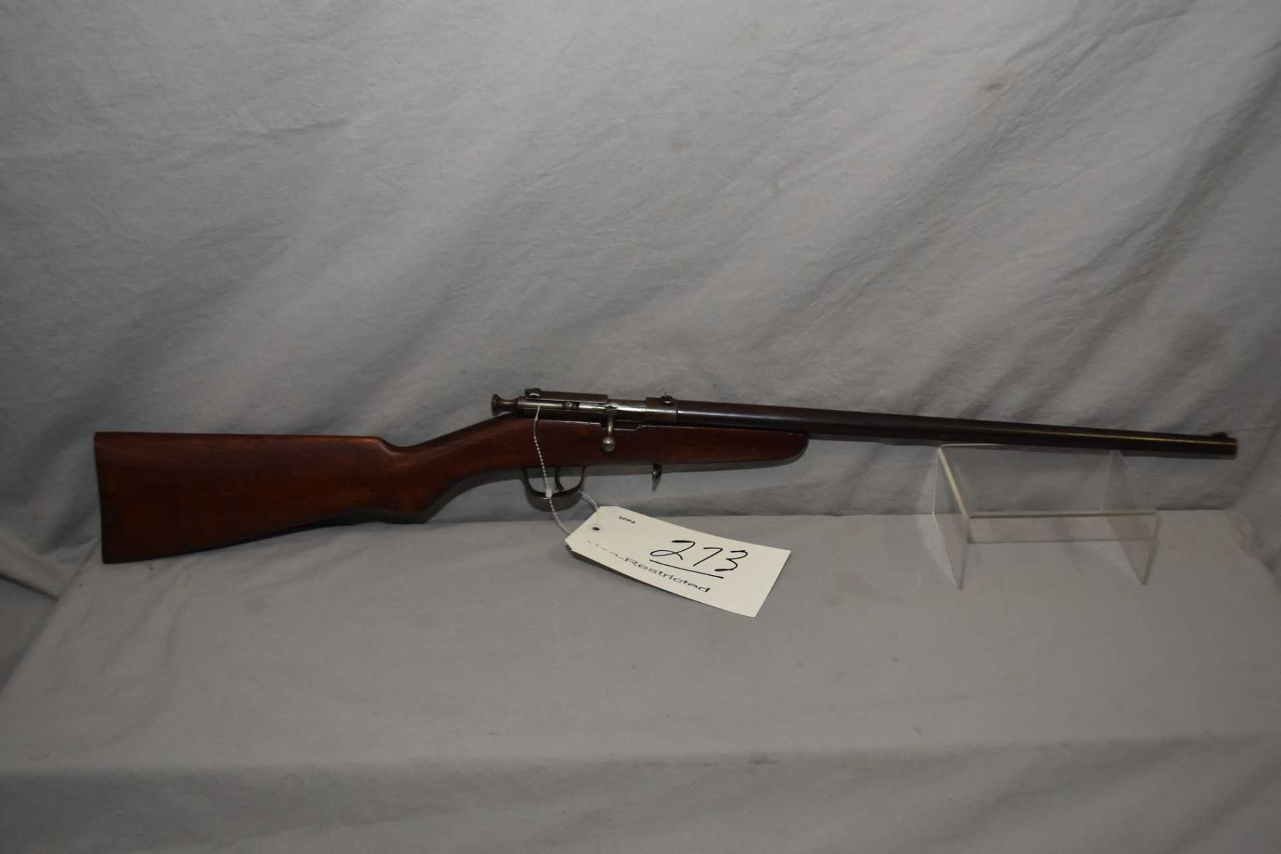 Cooey Model Canuck .25 Rimfire Cal Single Shot Bolt Action Rifle w/ 18" bbl [ blued finish turning brown, barrel sights including rear peep sight, rounded pistol grip stock, few marks and scratches to wood and metal ] Ser # Nil