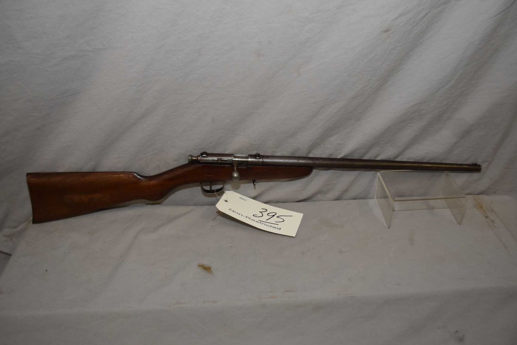 Cooey Model Canuck .25 Rimfire Cal Single Shot Bolt Action Rifle w/ 18" bbl [ faded blue finish turning brown, barrel sights, rounded pistol grip stock, with metal butt plate, and forend swivel, various marks and scratches to wood and metal ] Ser # Nil