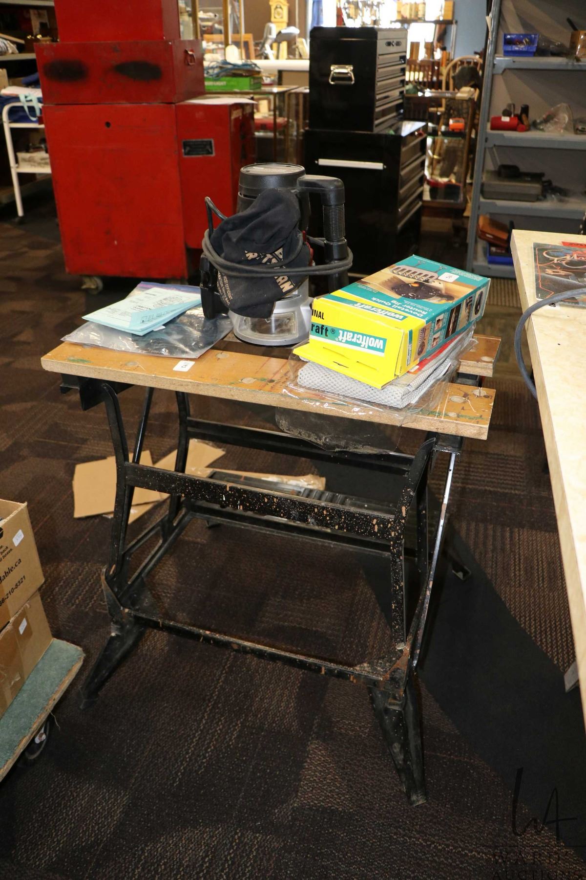 Craftsman dustless router no. 315 244 760, working at time of cataloguing, Workmate bench, Wolf Craft dovetail jig, bench vise etc.,