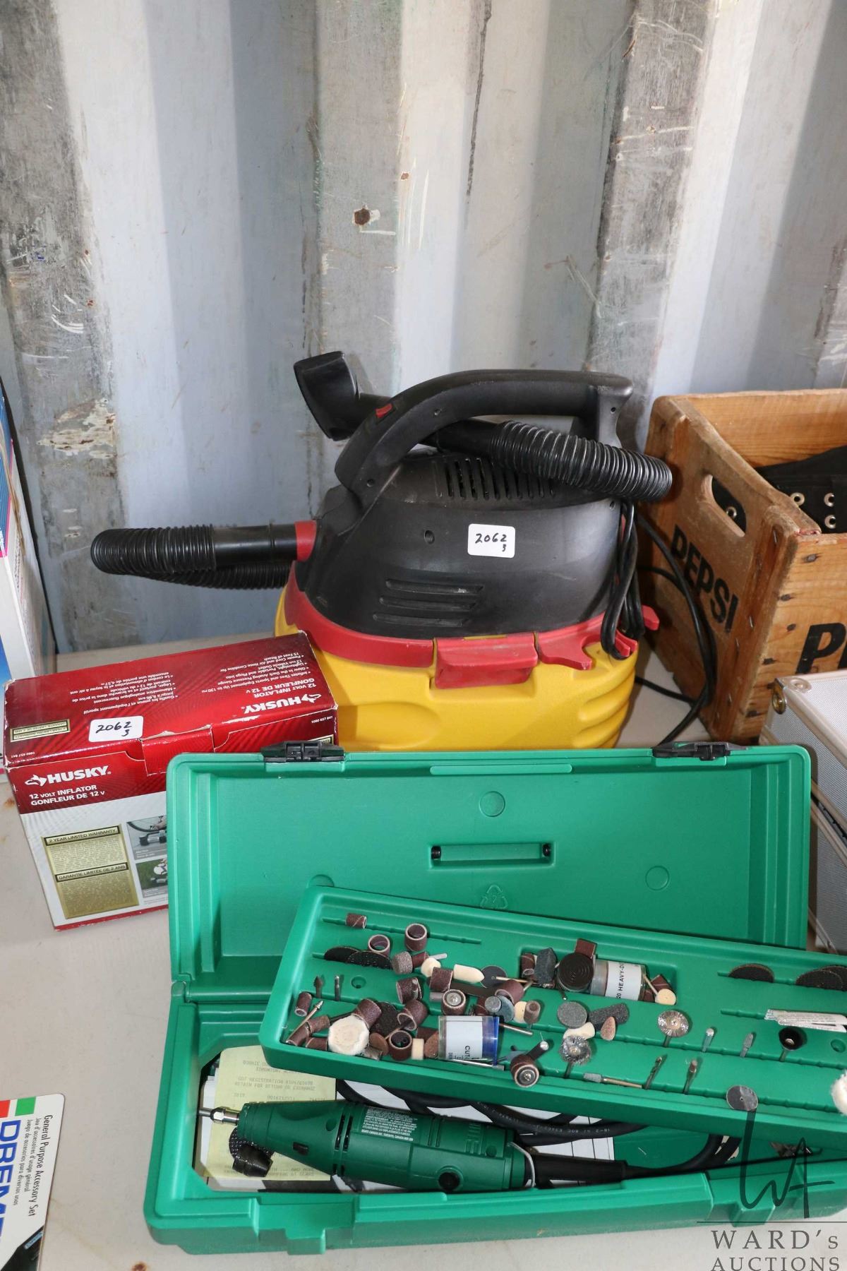 Craftsman laserie 90 series die grinder and bits, Husky 12V inflator pump and a Stinger wet/dry vac