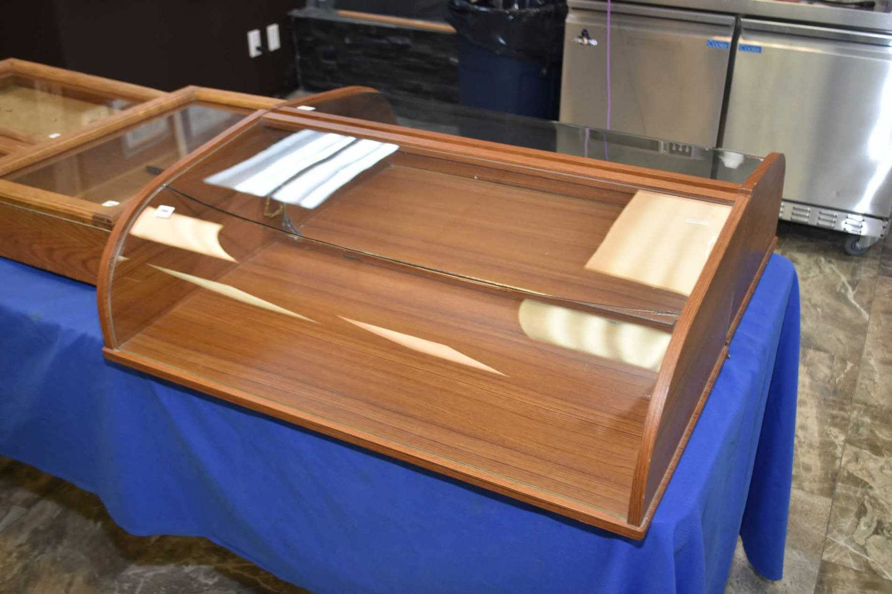 Curved glass, mirrored back, counter top display cabinet, 31" in width, note glass is cracked