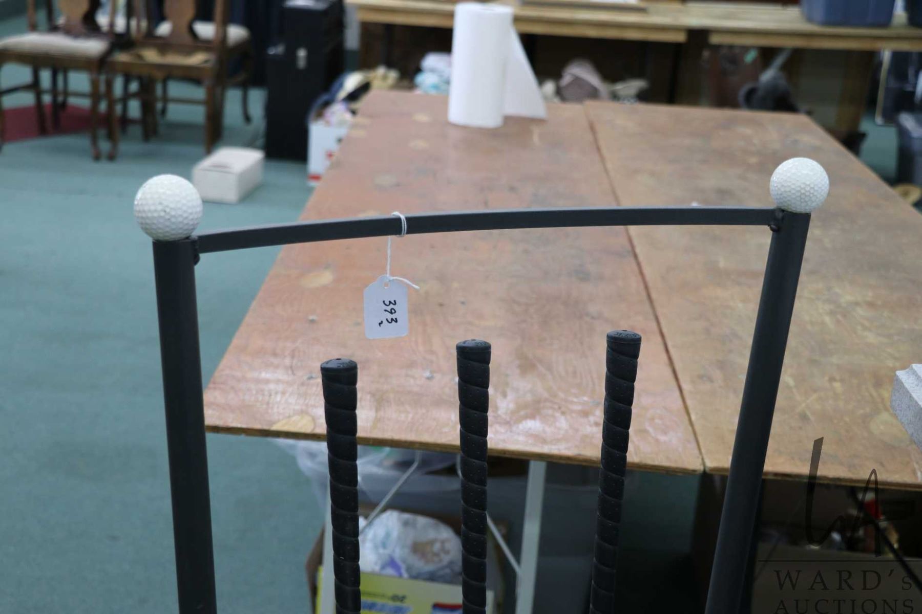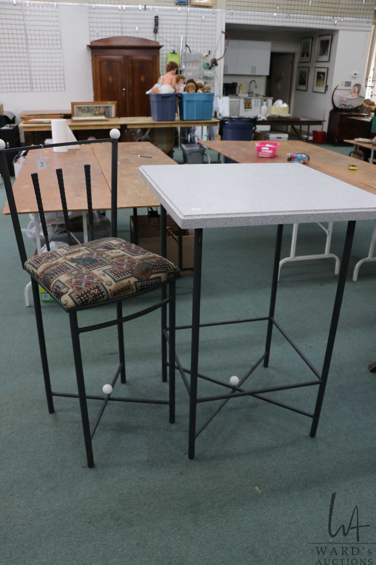 Custom made 42" high golf motif pub table and matching high back stool with 30" seat