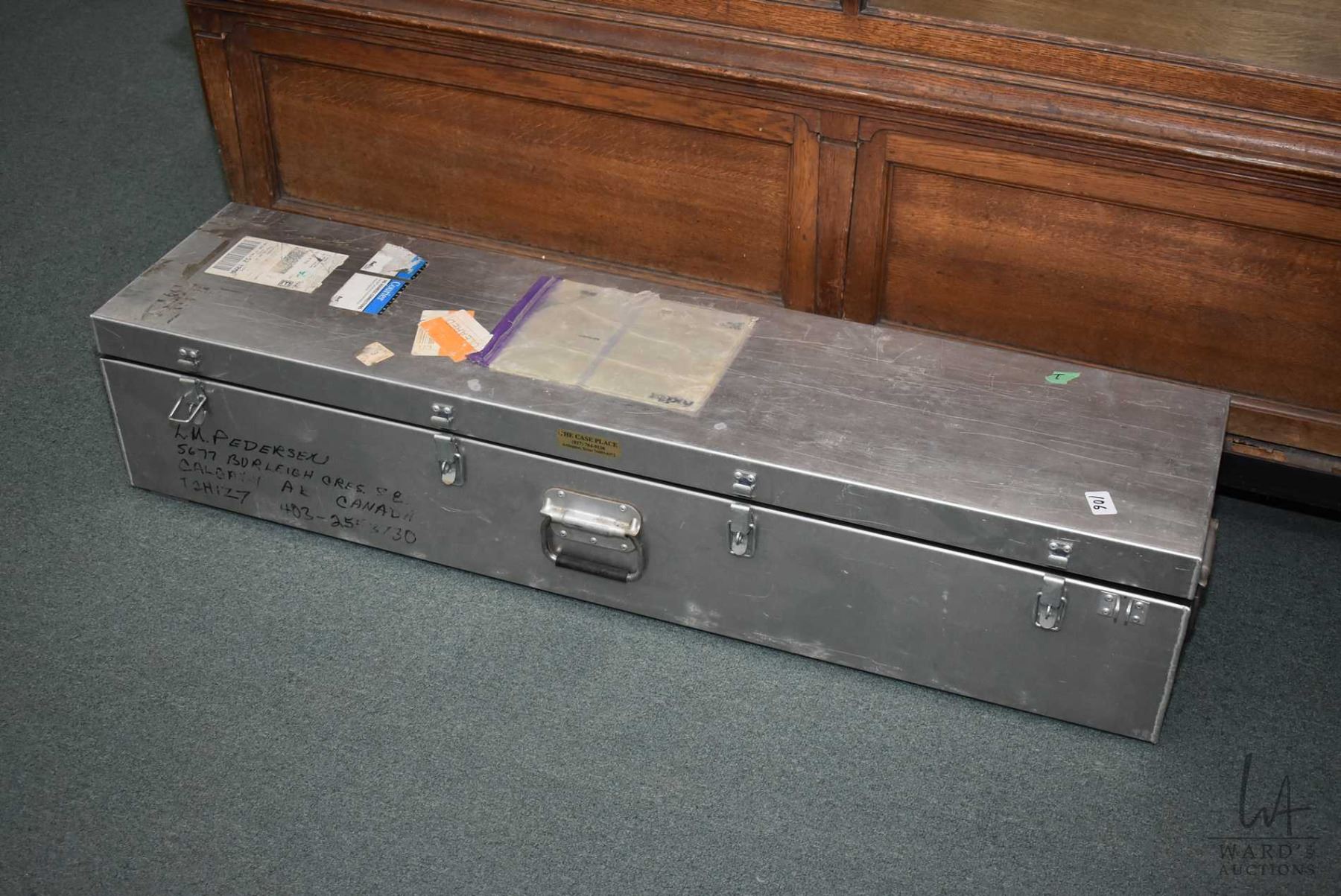Custom made aluminum lock box with four latches made by the Case Place 52" long, 11" in height and 12" deep
