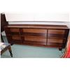Custom made oak two tier shelf unit with adjustable shelves. Purportedly made by reknowned local craftsman George Heagle Design & Mfg. Suitable for large screen television. 28" H X 72" W X 13" D