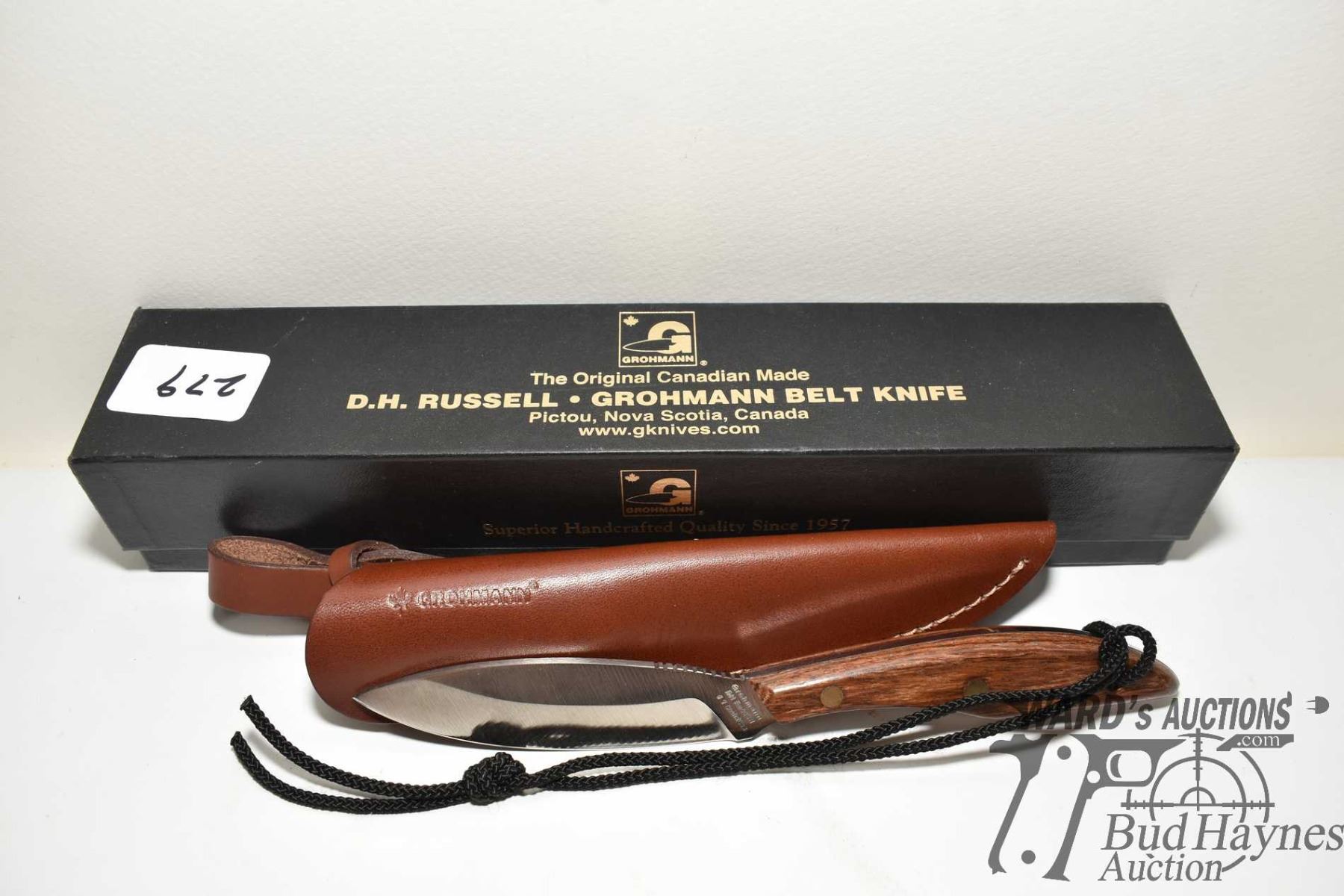 D.H. Russell #1 stainless belt knife w/ leather sheath and original box