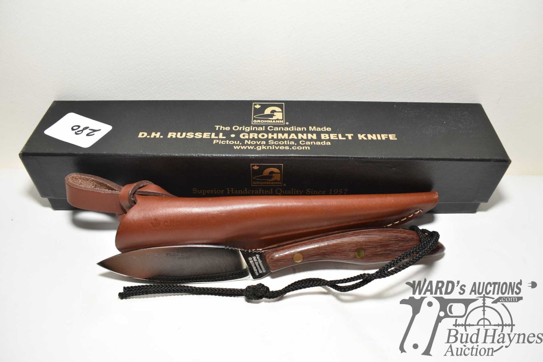 D.H. Russell #1 stainless belt knife w/ leather sheath and original box