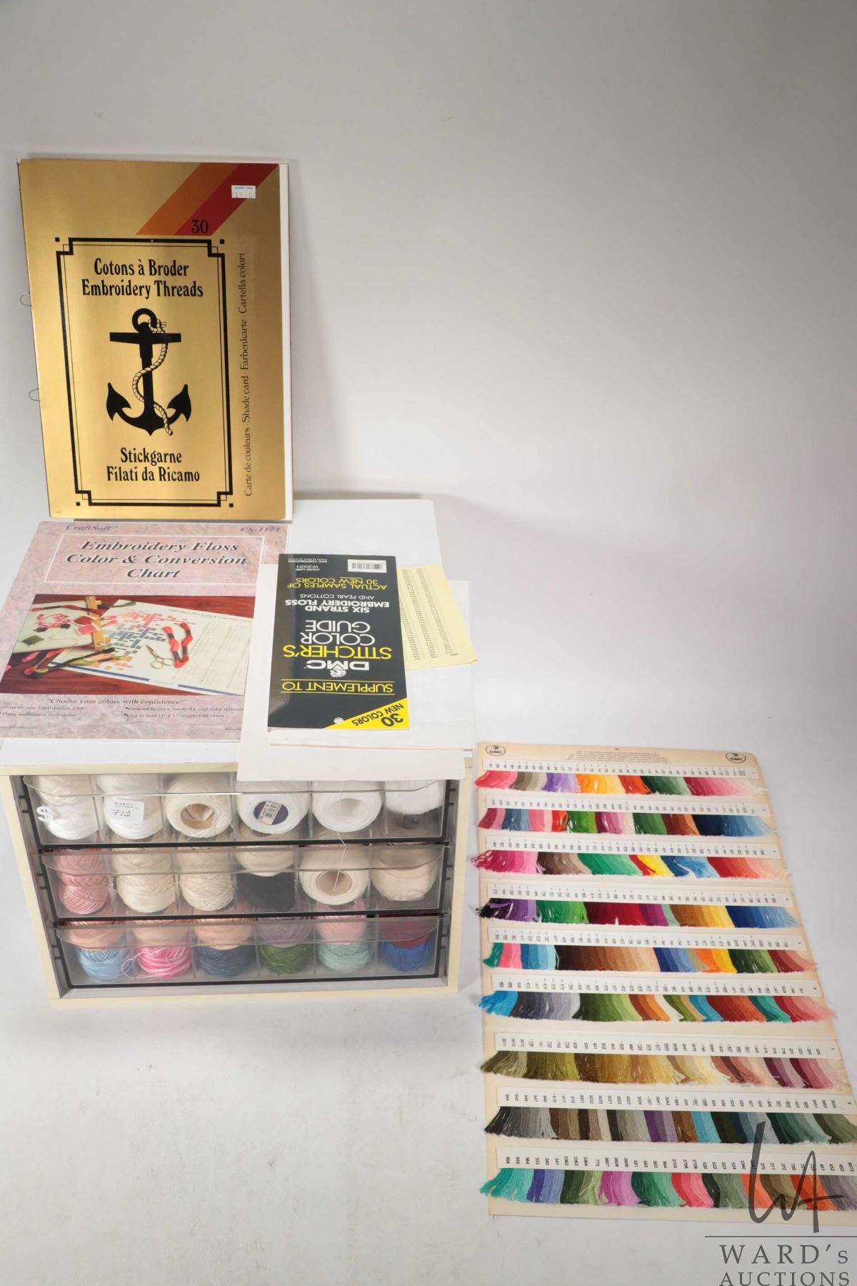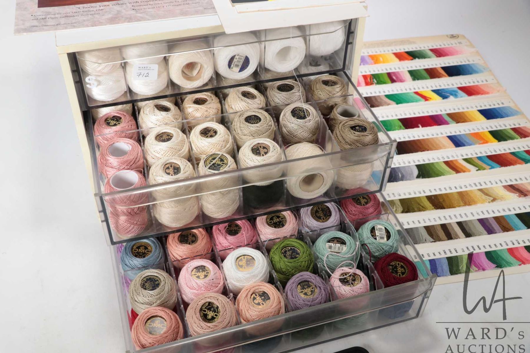 DMC Cotton Perle three drawer cabinet filled with a large selection of DMC Cotton Perle embroidery t