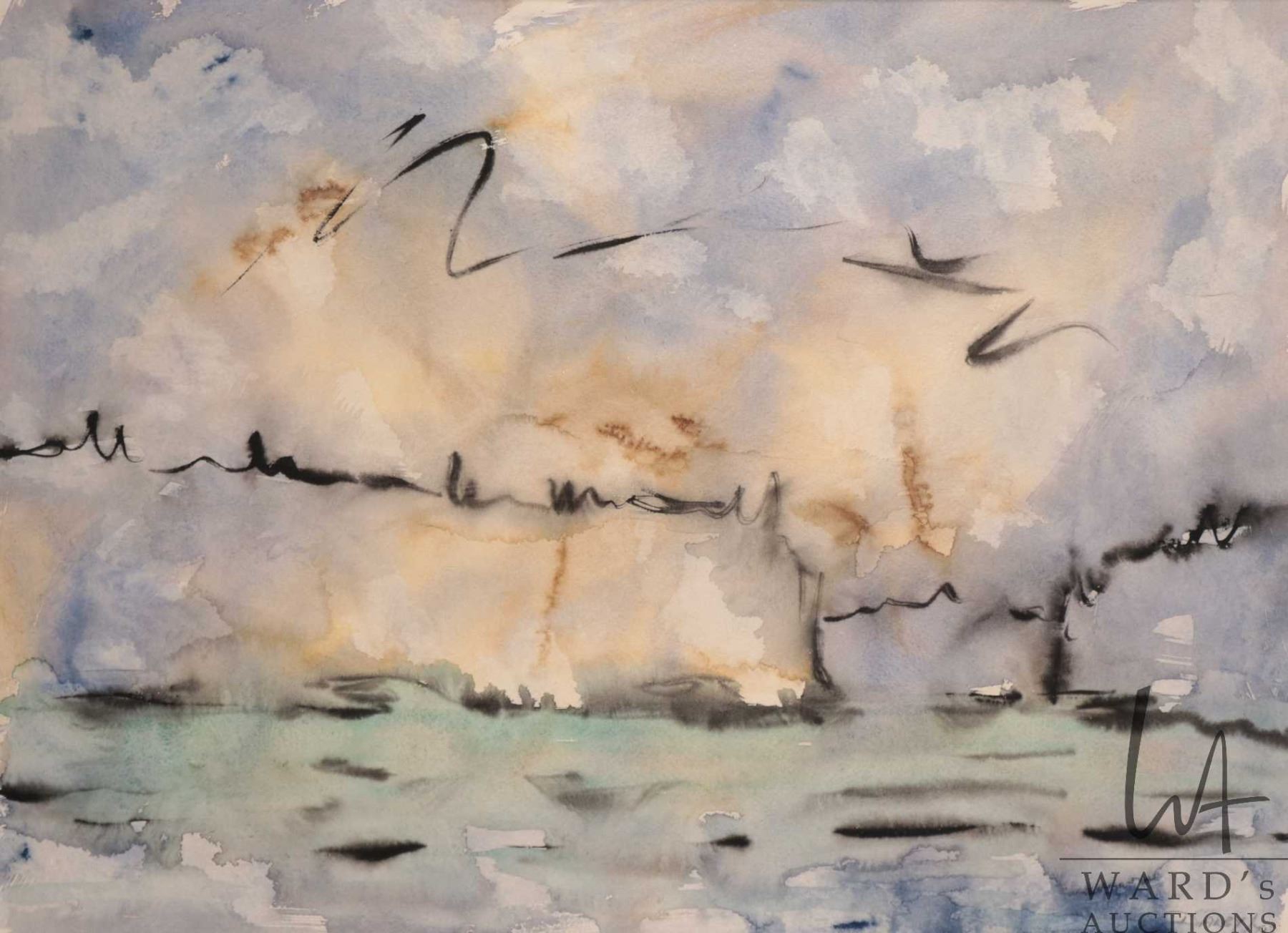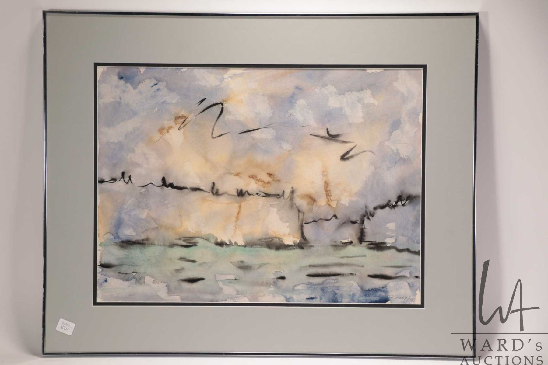 Dalby, framed original watercolour abstract landscape, artist signed, 15" X 20"