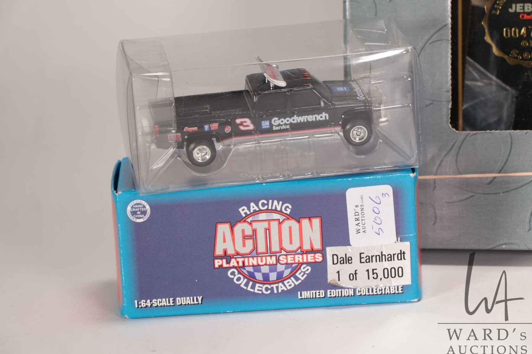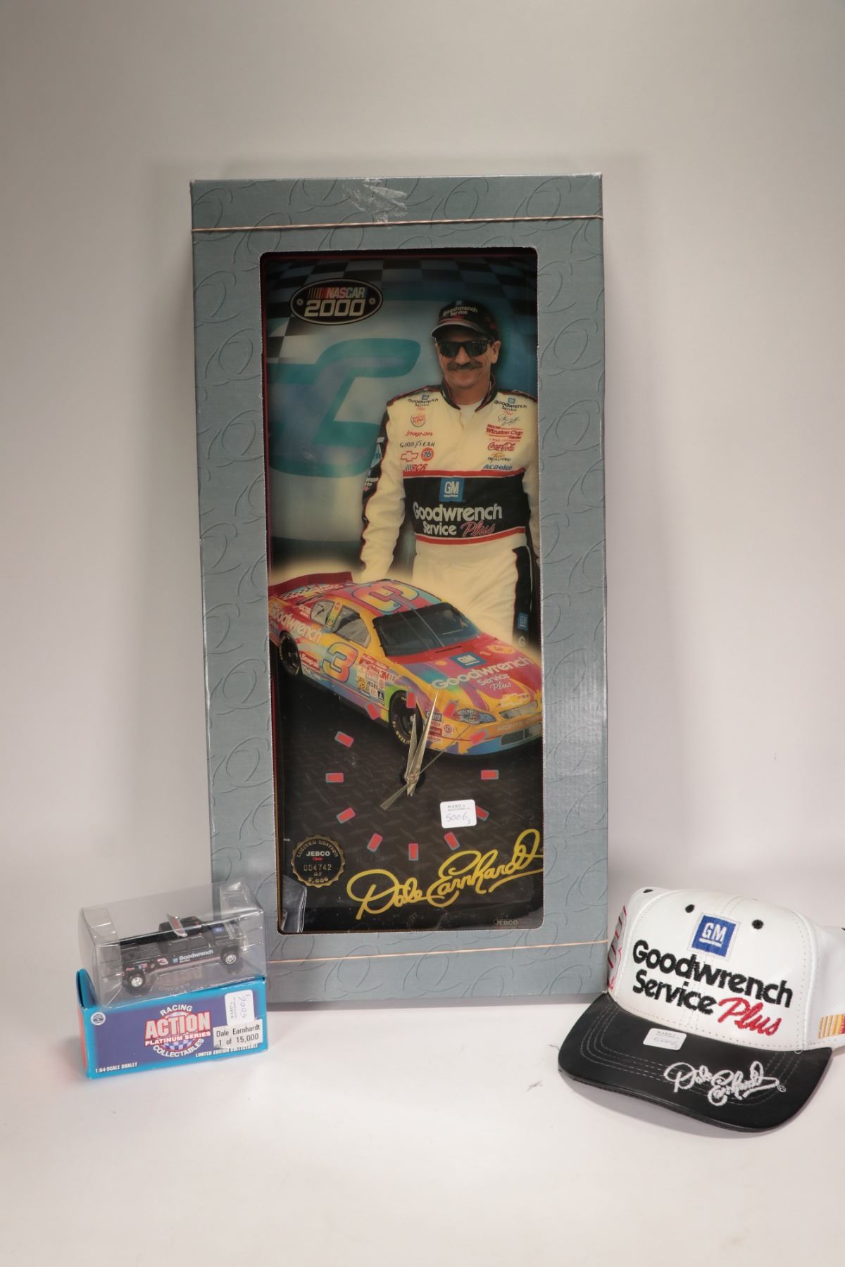 Dale Earnhardt llimited edition Quartz wall clock no. 4740 of 5000, 23" X 11" overall dimensions and a limited edition Dale Earnhardt Dually, one of 15,000 and a leather ball cap