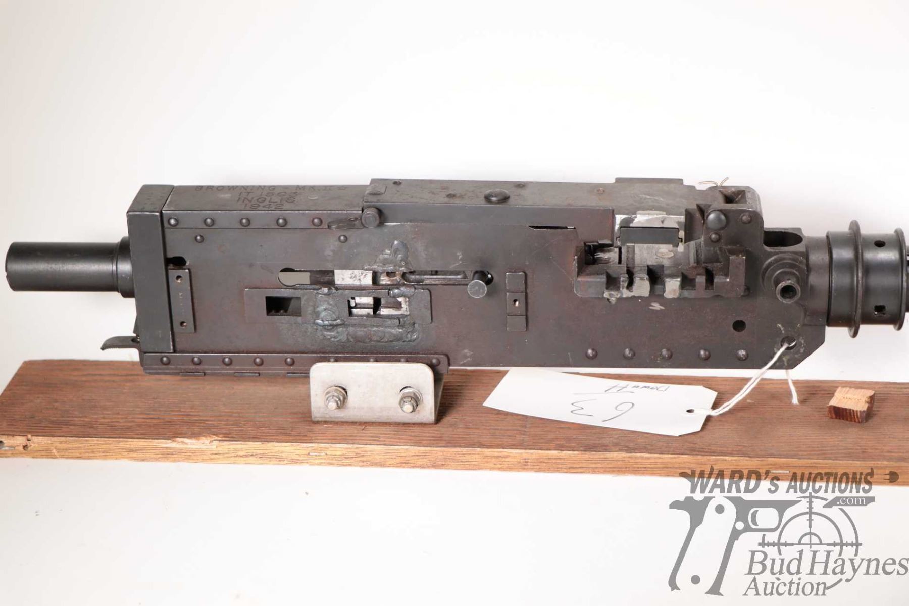 De-activated Browning MK II machine gun serial no. IT1503 and marked on top "Inglis 1942". Was imported from England and the 80's and included confirmation letter from the R.C.M.P. date 1986. Was presumed by consignor to have been fitted to a Spitfire aircraft although no provenance. Includes storage box.
