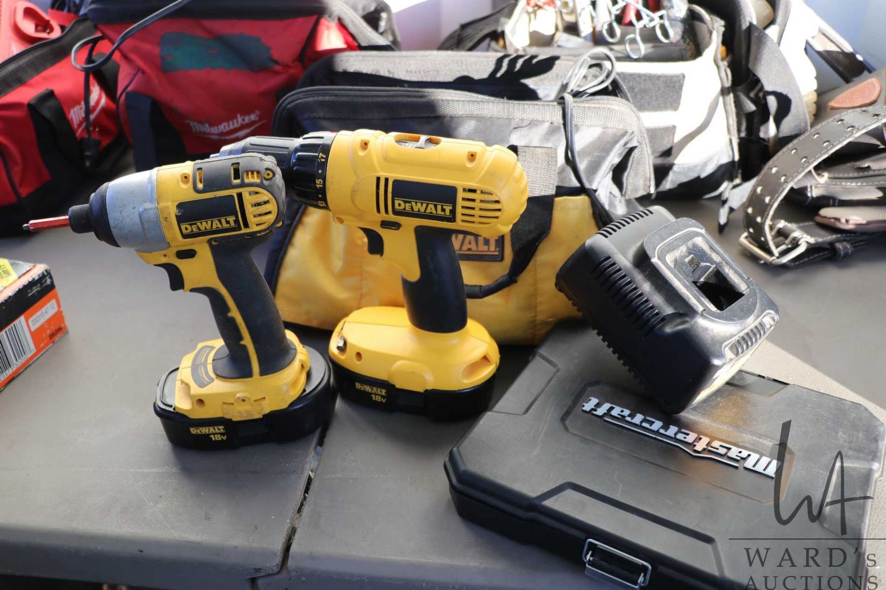 DeWalt 18 volt drill and impact driver with charger and assorted drill bits