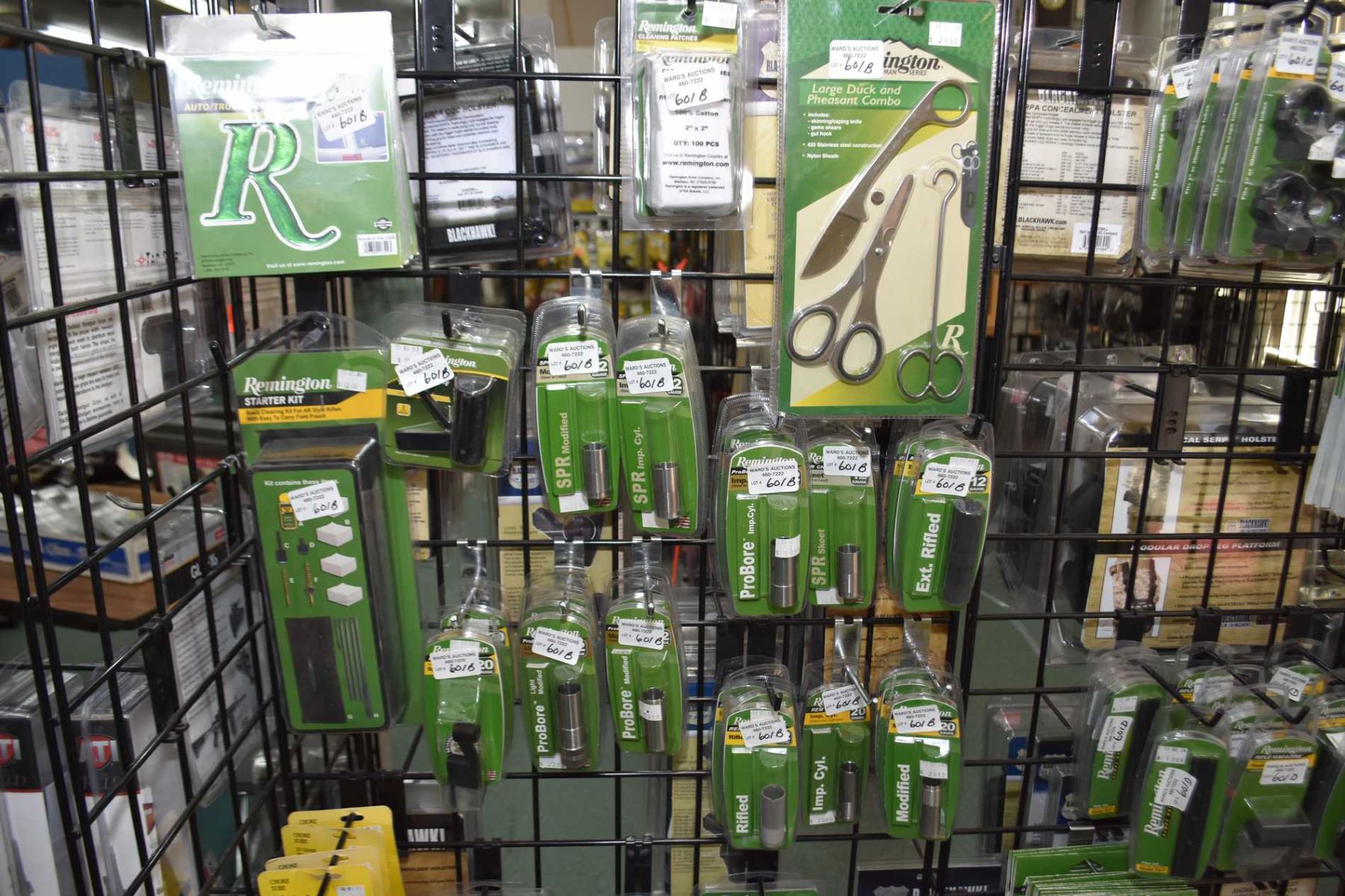 Dealers lot of Remington accessories Dealer lot of Remington accessories including chokes, recoil pads, cleaning kit, stickers, duck and pheasant skinning kit, 1911 pistol grips etc.