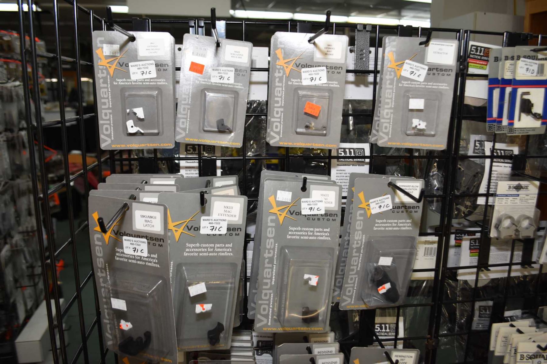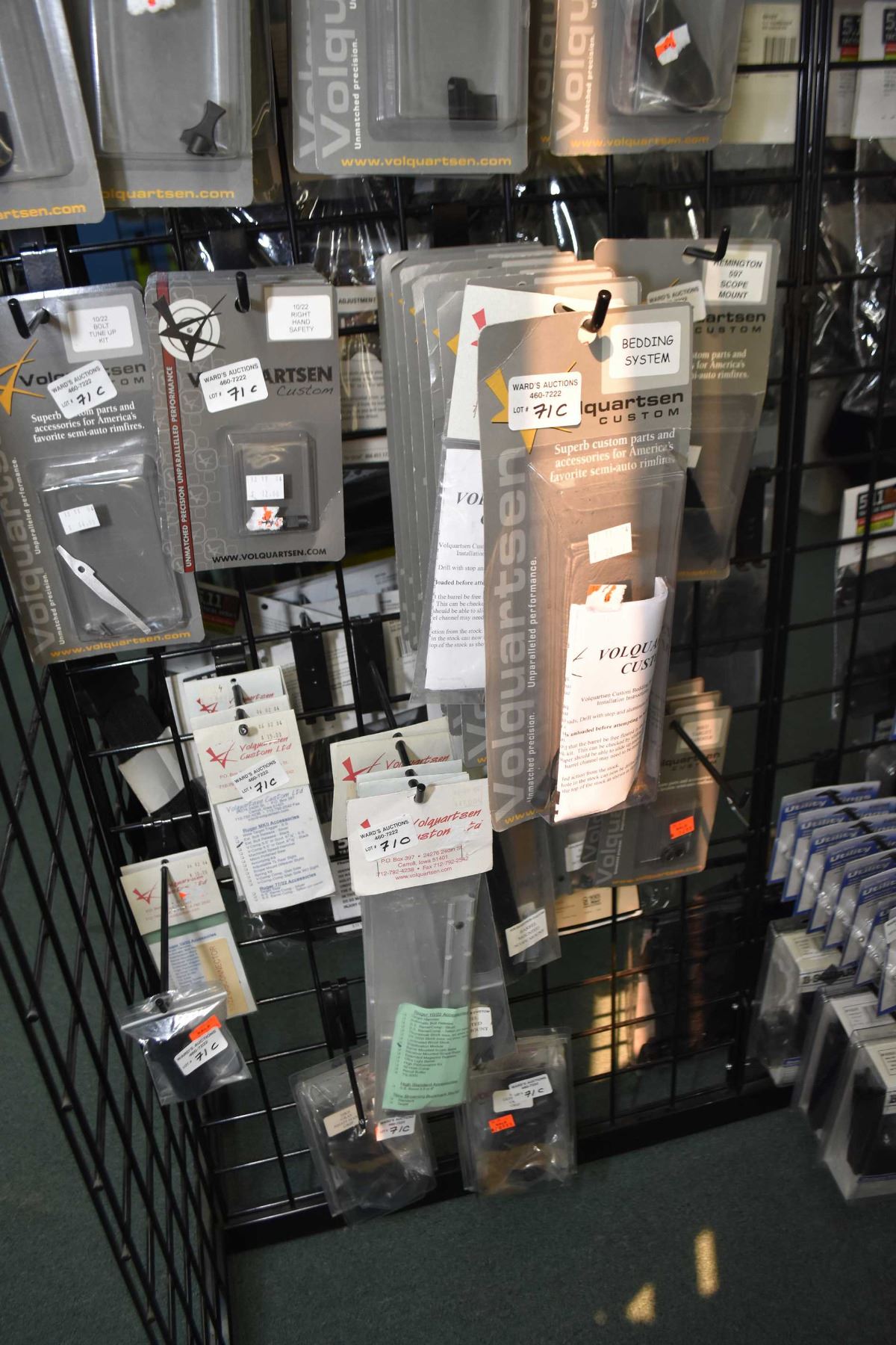 Dealers lot of Volquartsen parts Dealers lot of approximately sixty Volquartsen brand parts and accessories including replacement parts, bedding systems, grips etc.