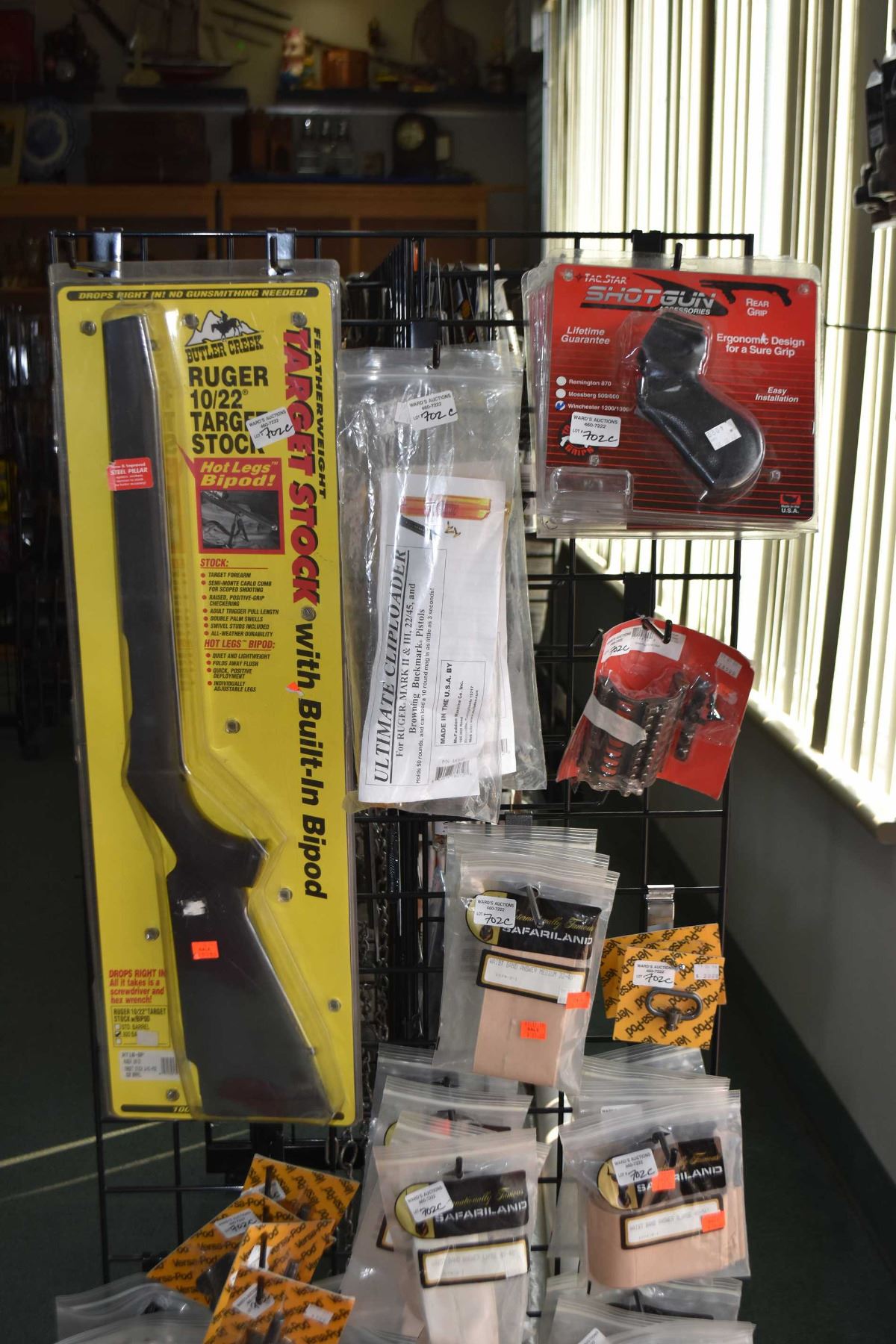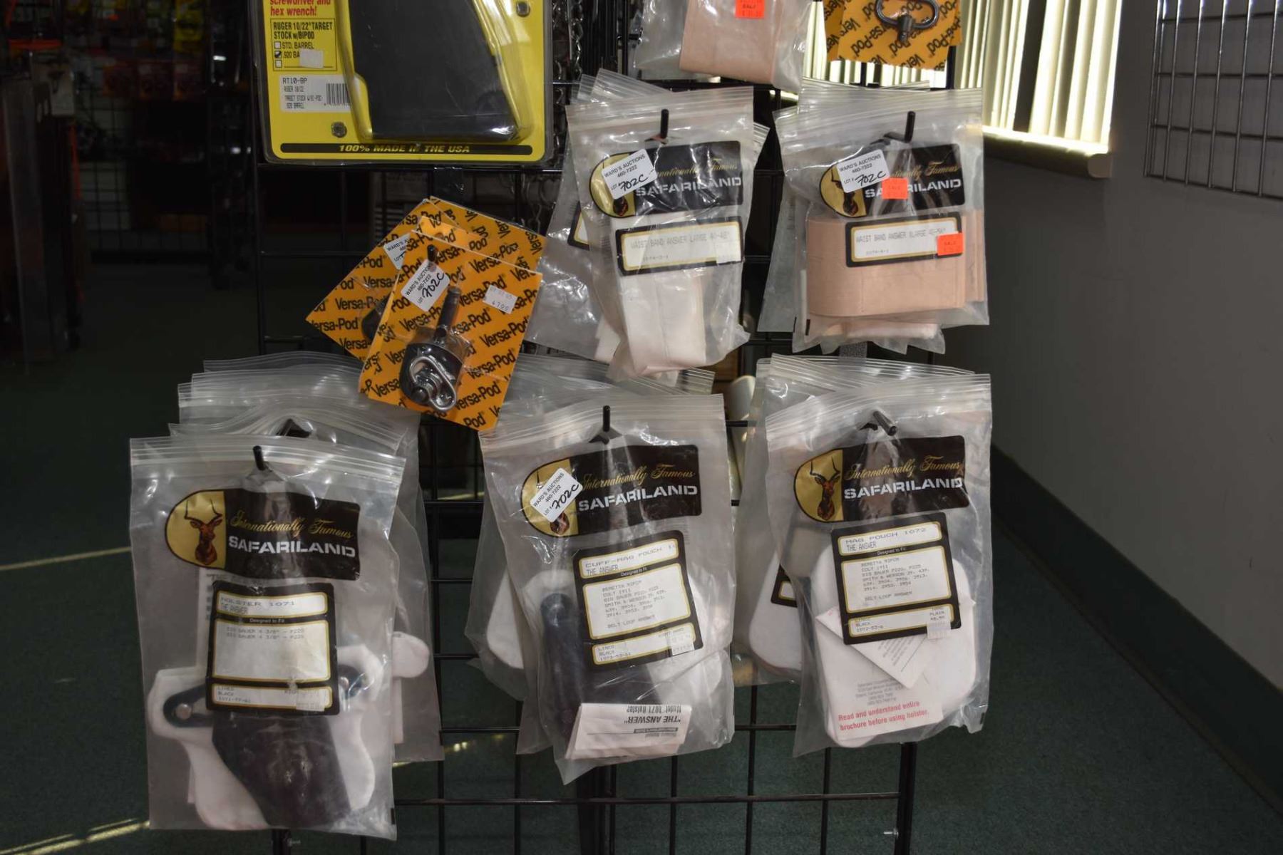 Dealers lot of brand new retail Dealers lot of brand new retail including Safari Land holsters, waistbands etc. plus Tacstar pistol grips, two Ruger MKII M3 "clip loaders", Butler Creek Ruger 1022 synthetic stock etc.