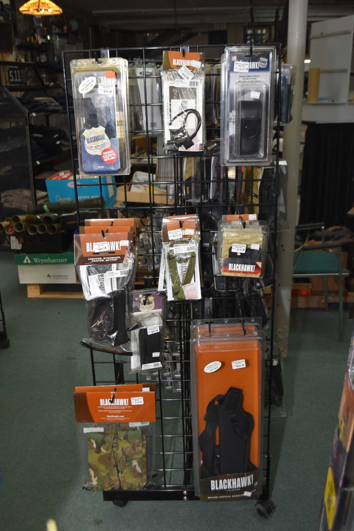 Dealers lot of retail accessories Dealers lot of brand new retail accessories including Blackhawk mag pouches, landyards, pistol bungi retention kits, two Smith & Wesson 5946 right hand holsters, three Weapons Catch MK2, two left hand shoulder holsters etc.
