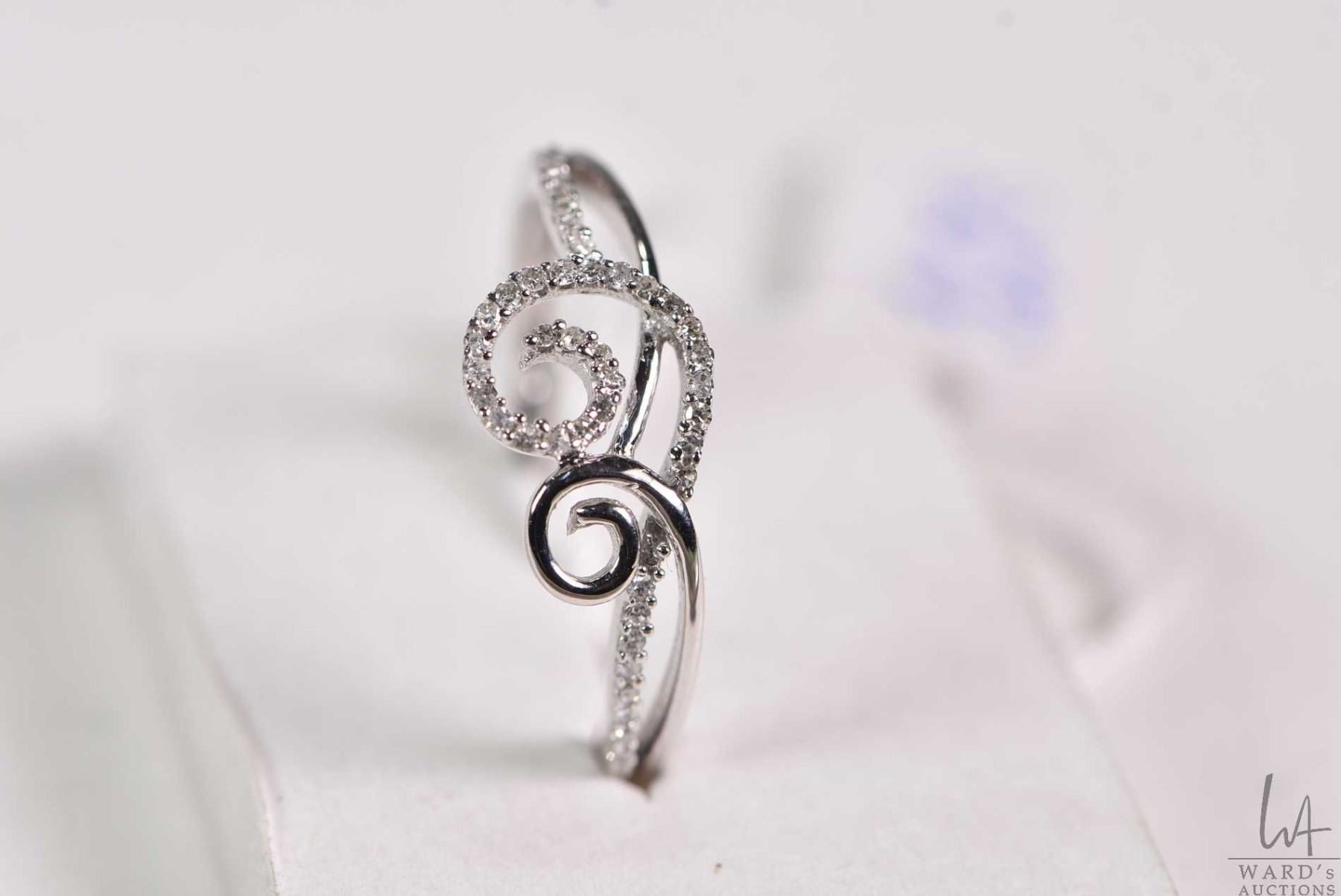 Delicate 10kt white gold and diamond ring set with 0.12cts of round diamond gemstones