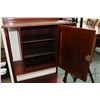 Delicate antique cabinet with single door exposing three shelves suitable for music storage 46" H X 28 W X 14" D