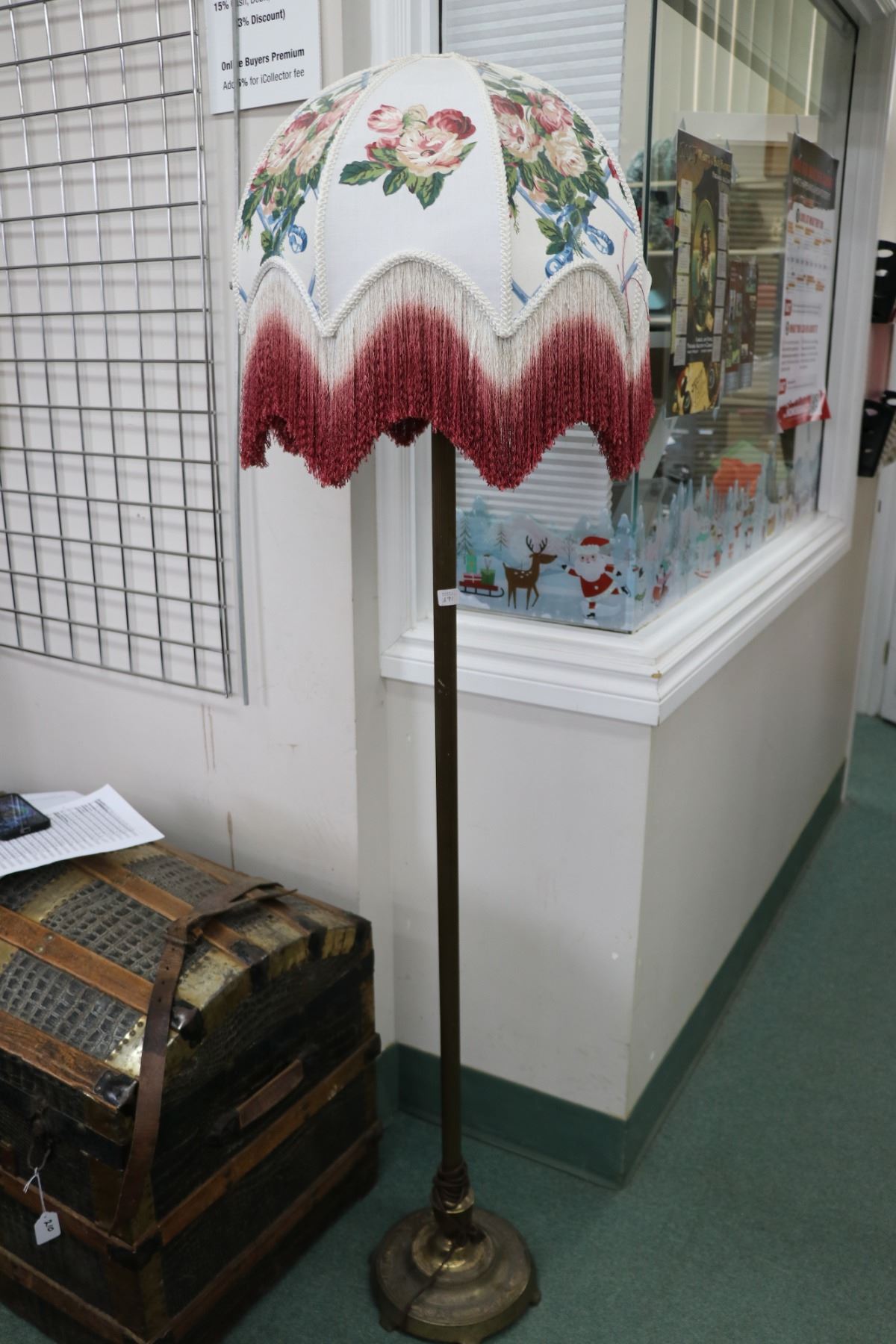 Depression era torche lamp stand with diffuser style milk glass shade plus a homemade cloth shade