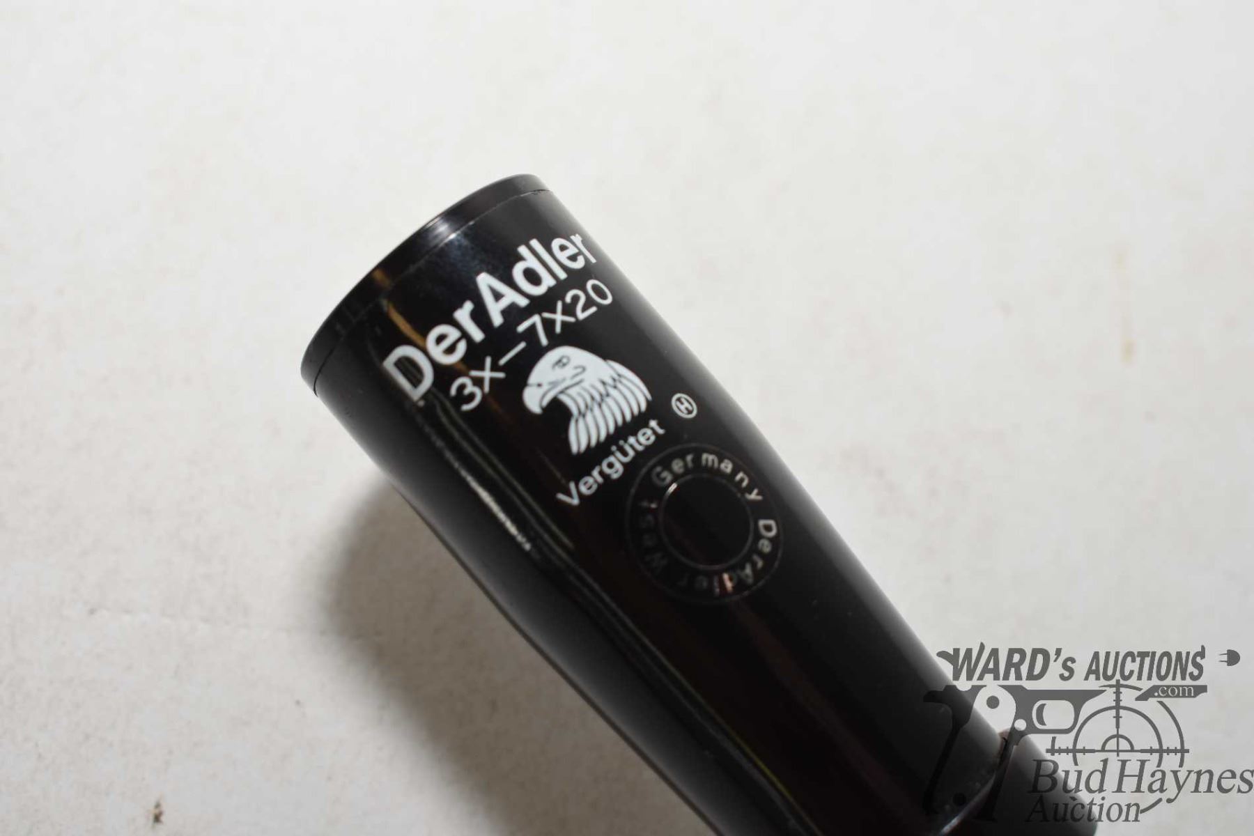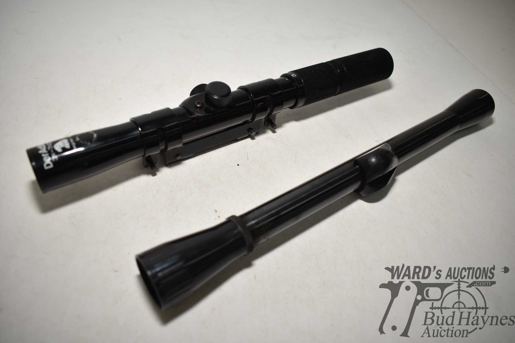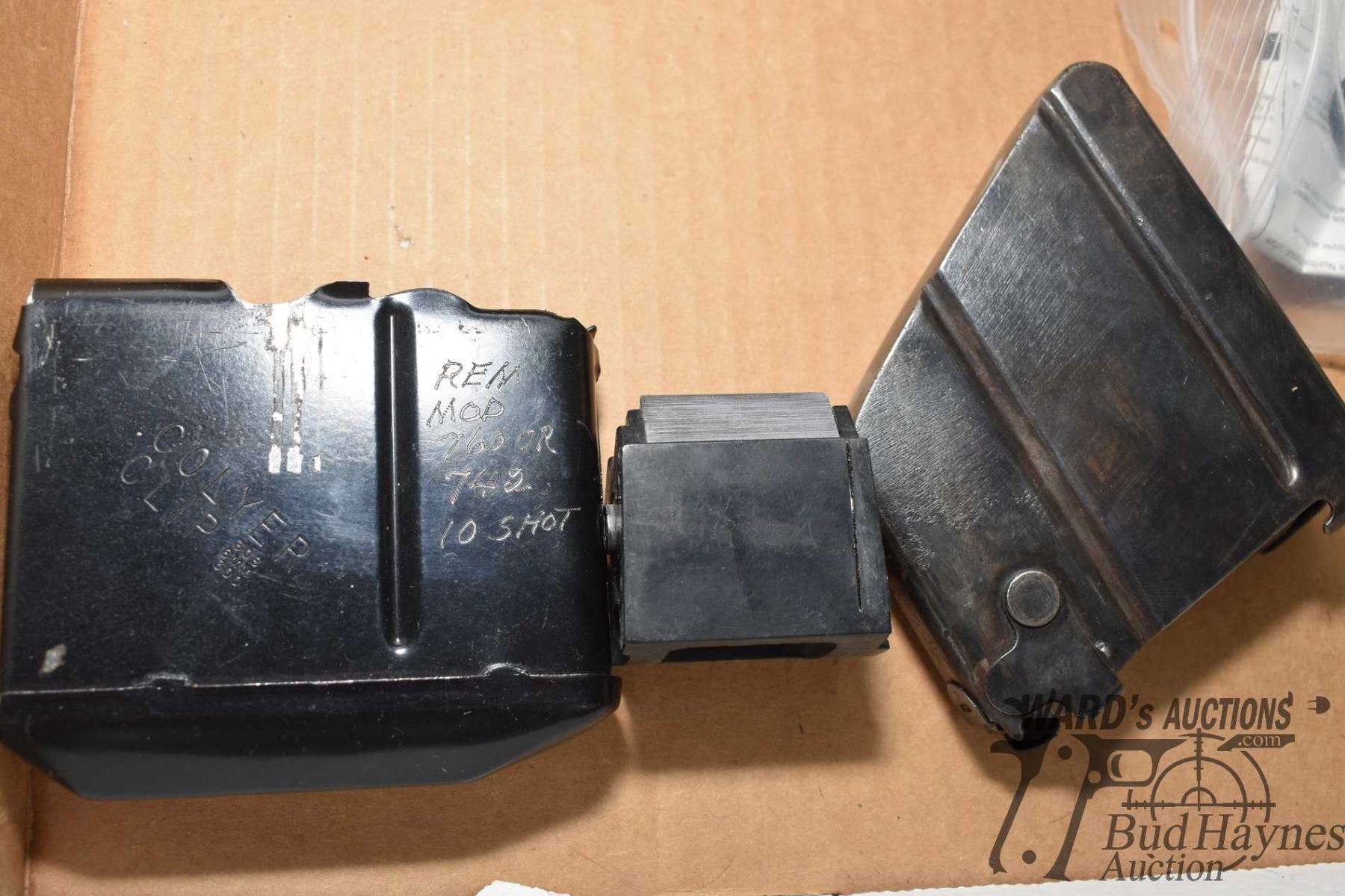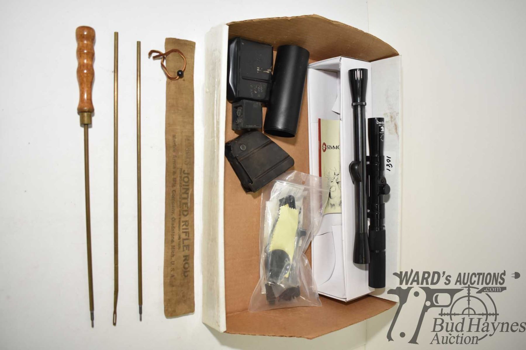 Deradler 3X - 7 x 20 scope w/ mount, a Weaver C4 scope, rifle cleaning rod, Remington 760 MAG, Ruger MAG, Enfield MAG and a bag containing Red Dot accessories