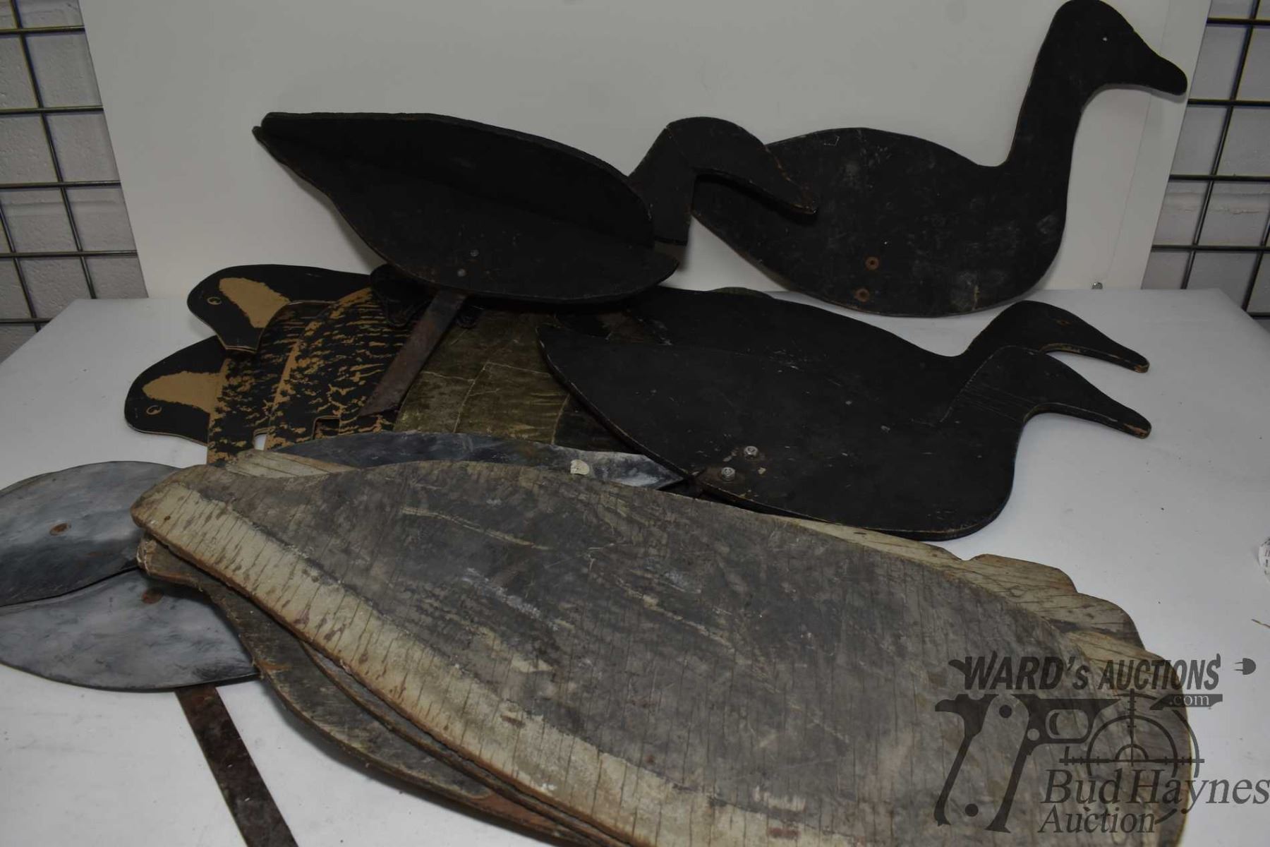 Approx. 15 vintage decoys in wood, cardboard and metal