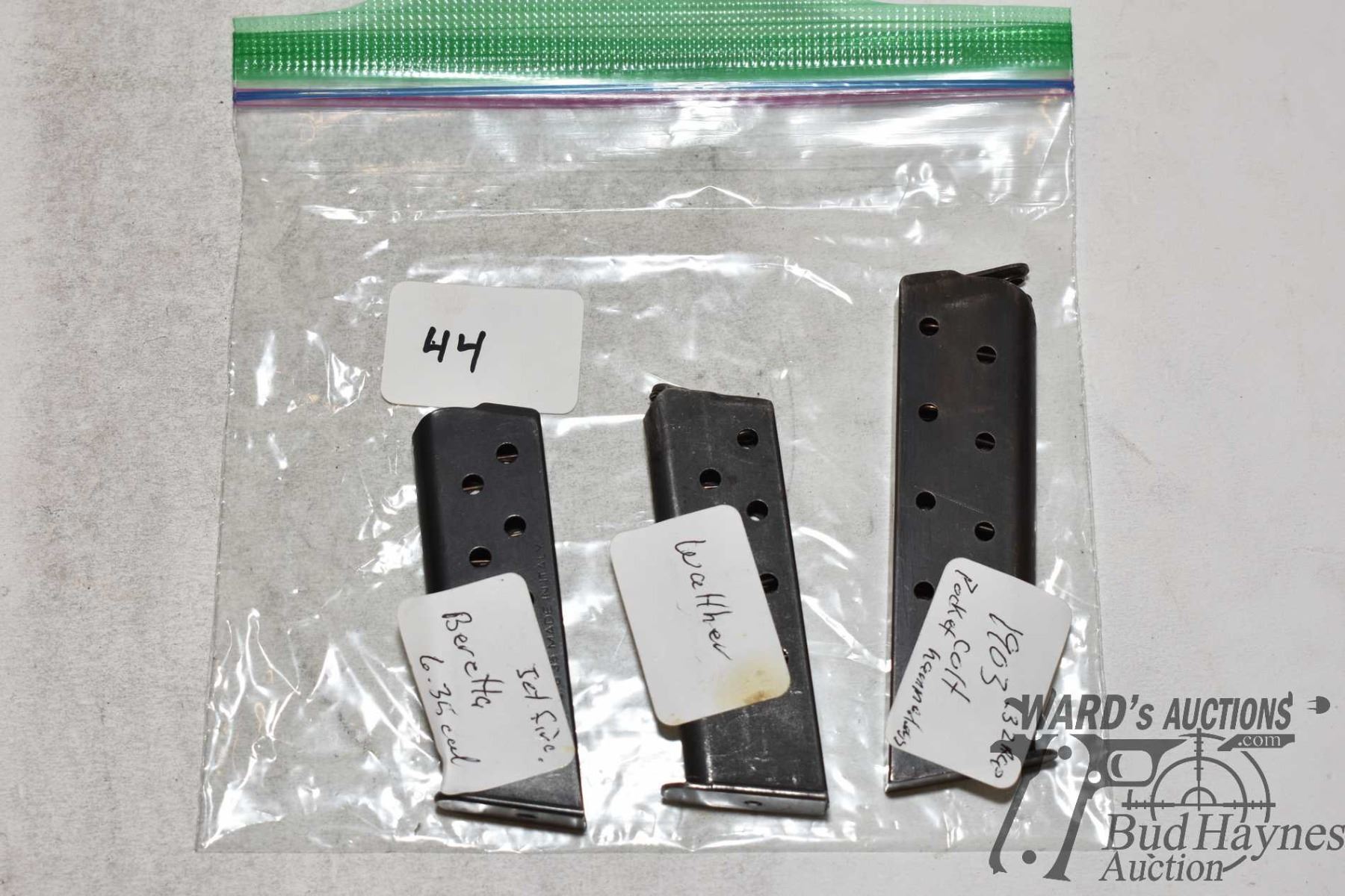 Three .22 mags including one Beretta 6.35 cal Jetfire, one 1903 Colt Pocket hammerles and a Walther mag
