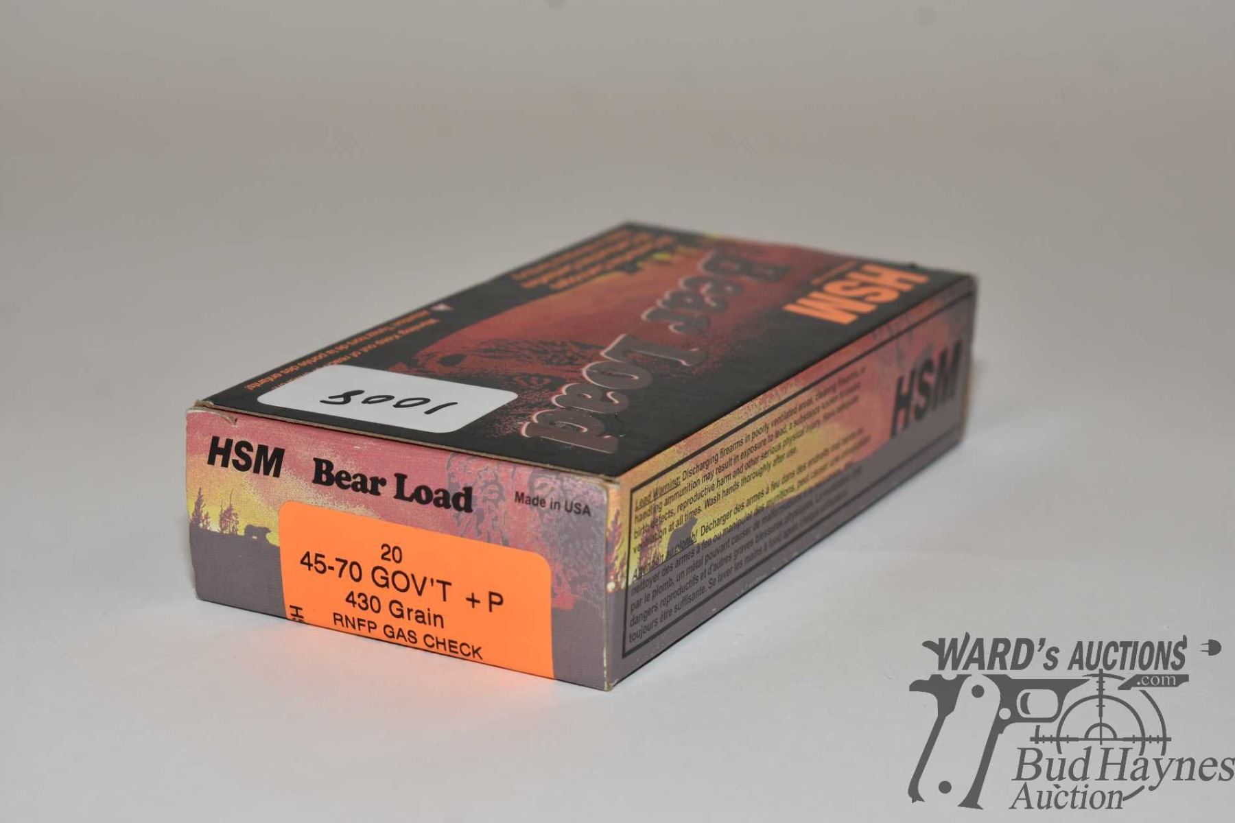 One full 20 count box of HSM bear load .45-70 gov 430 gr RNFP gas check