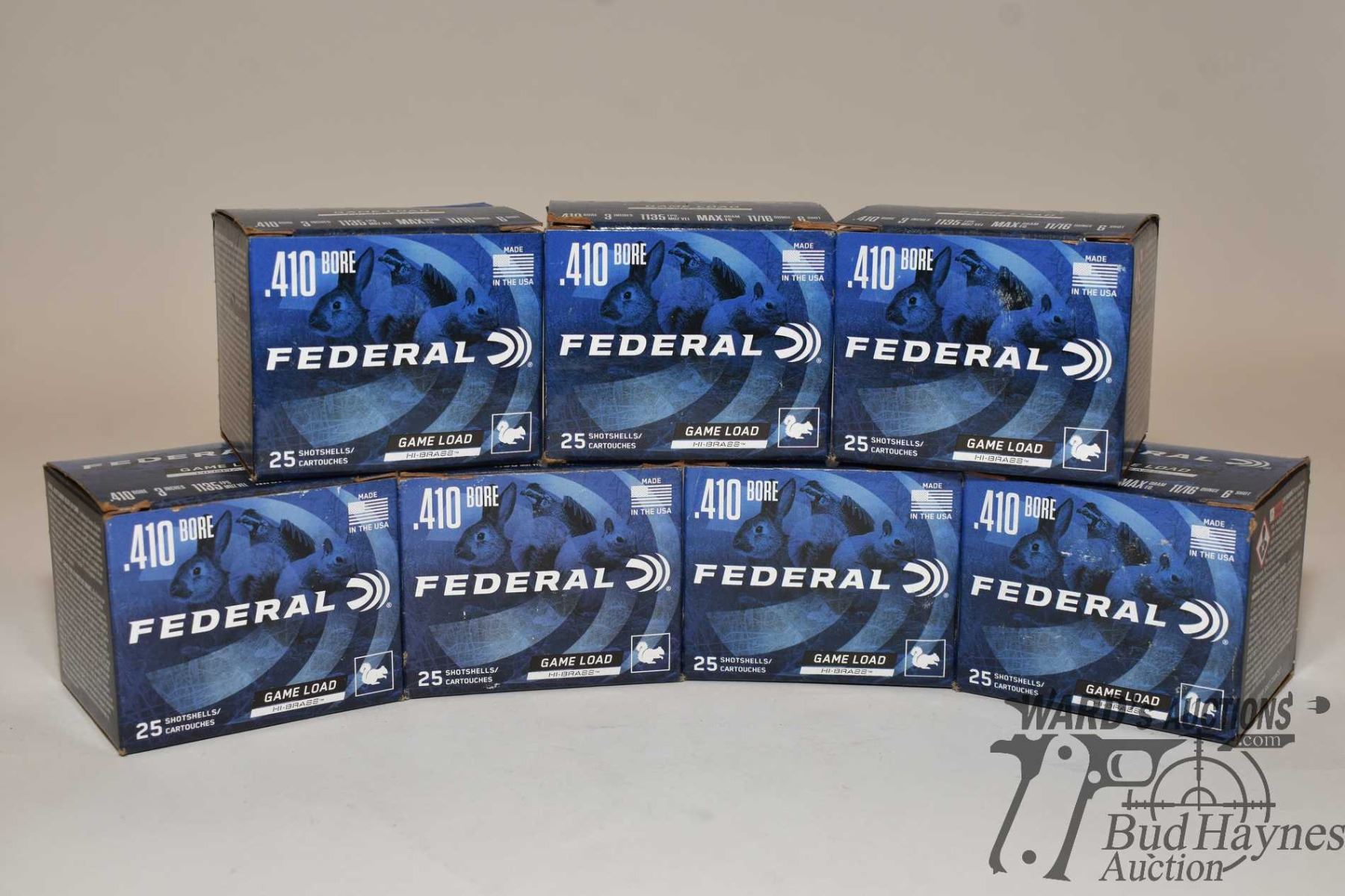Six full 25 count boxes and one 10 count box of Federal Gameload .410 3" #6