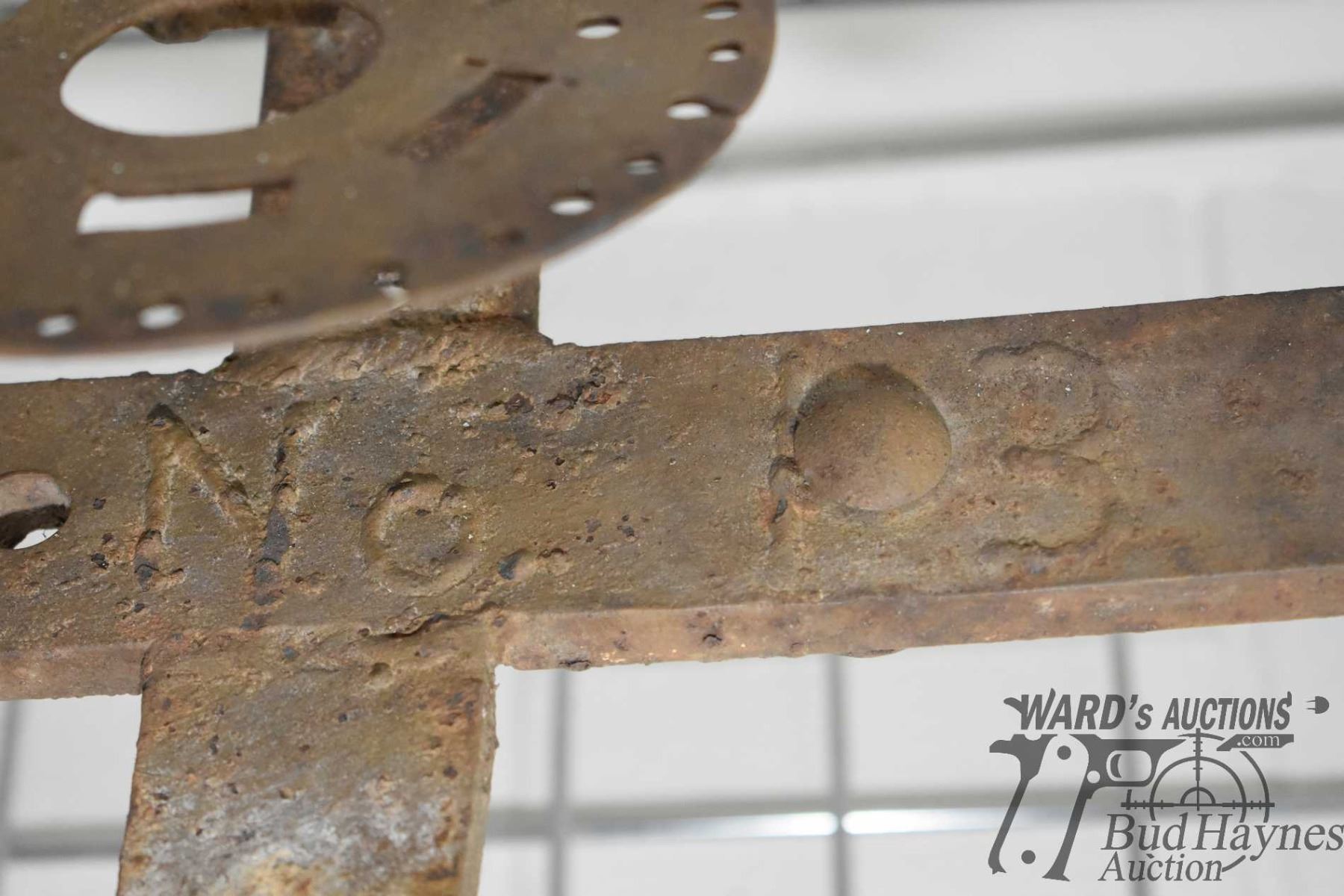 Large bear trap, 53" in length. Has a welded "No 13" on the base