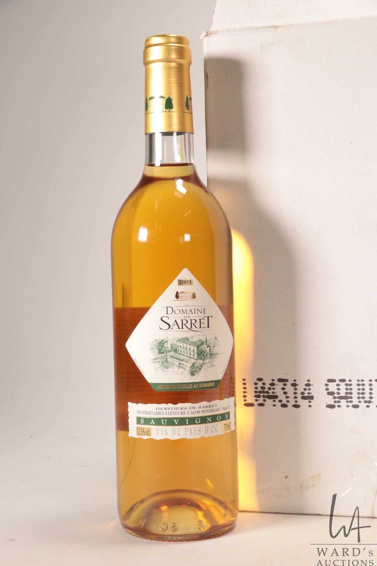 Domaine De Sarret/ 2003 Sauvignon/ Case of 12 X 750ml/ 12% ABV Note: Alcohol cannot be insured by any courier in Canada. Local pick up is recommended. Canadian bidders only
