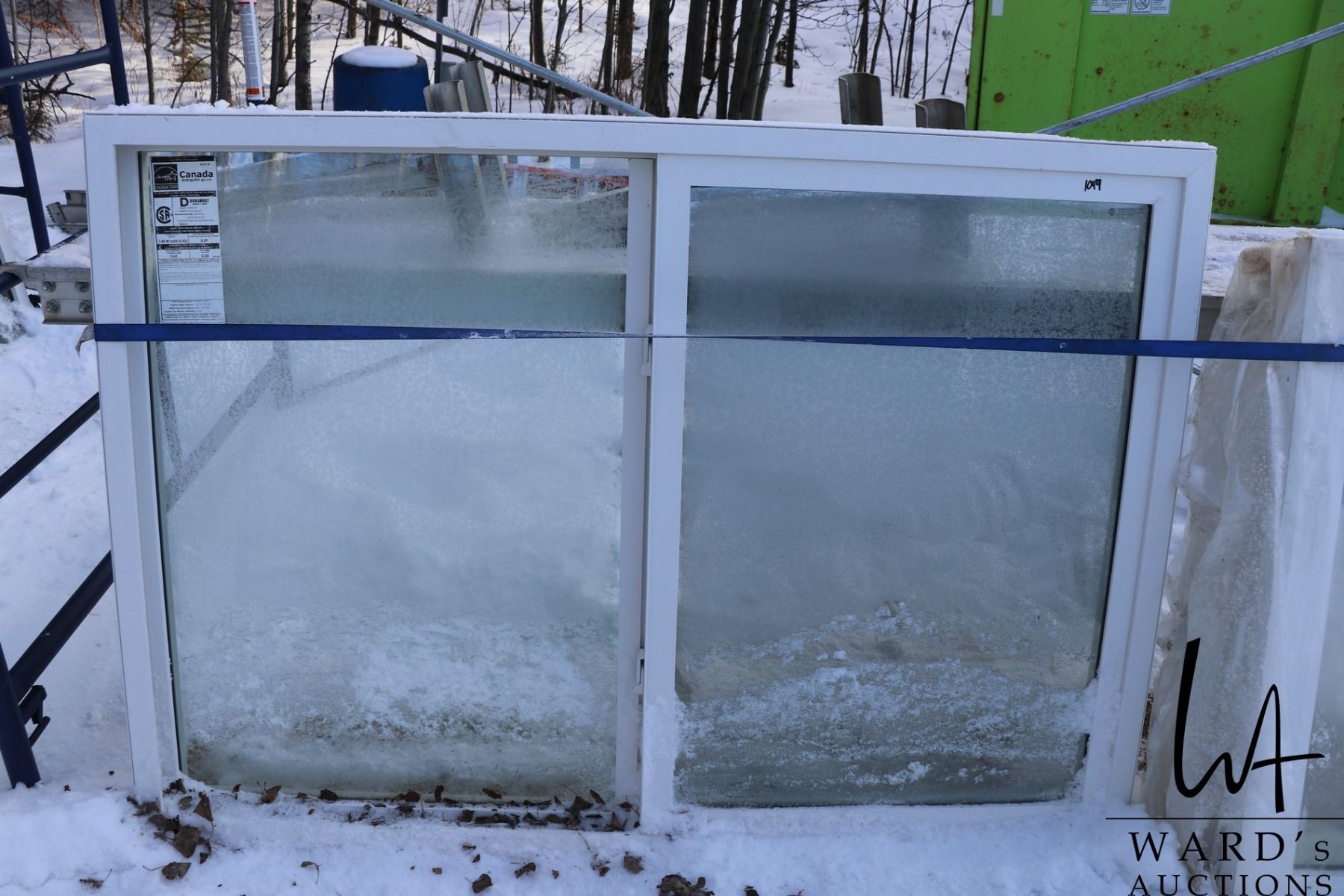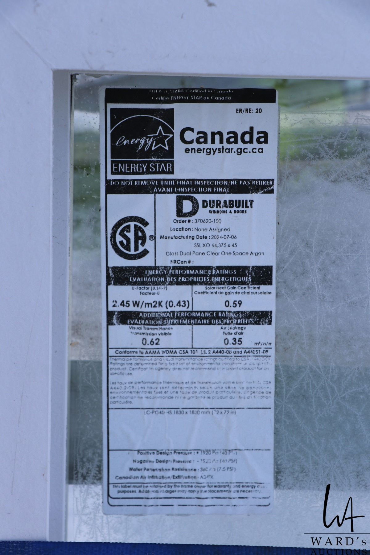 Durabuilt window, Glass dual pane solar block one space argon, 64.375" x 45"