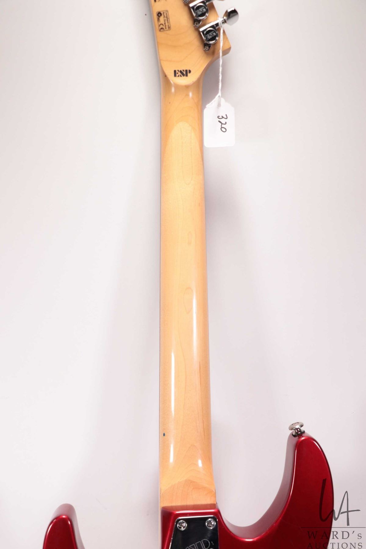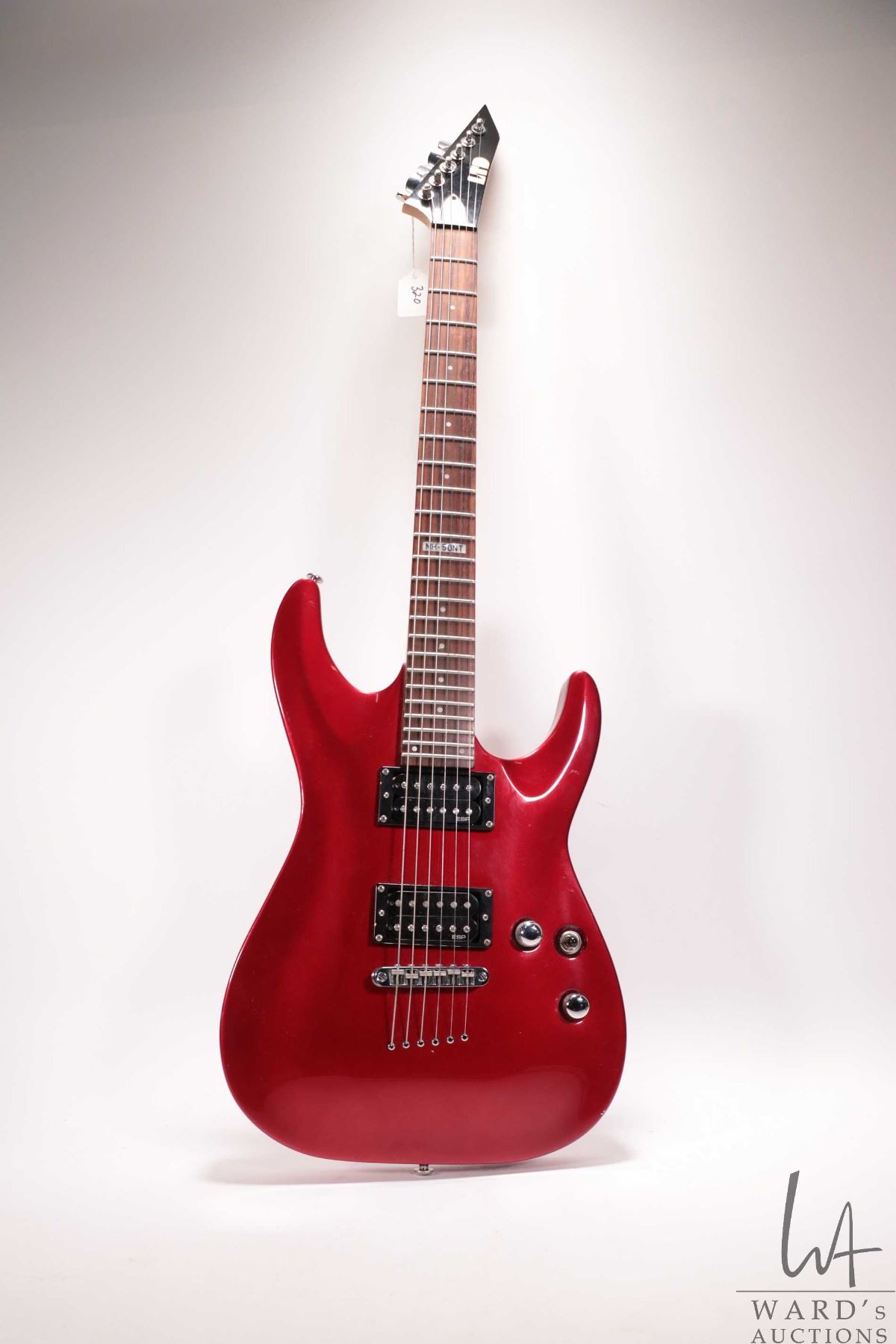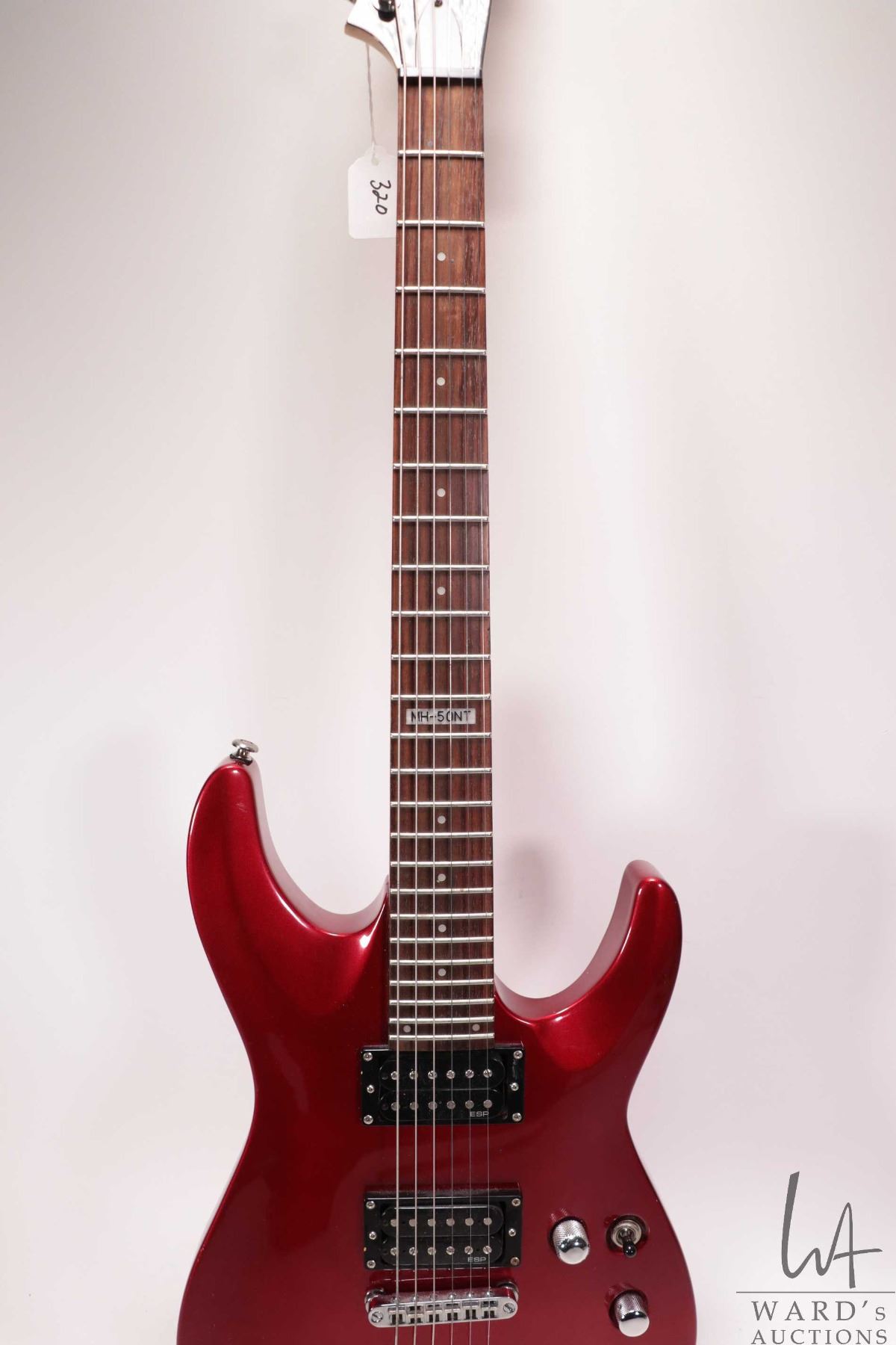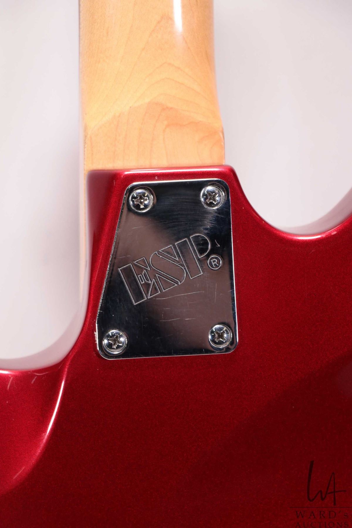 ESP Ltd. MH-50NT guitar with "string-thru-body" bridge design, ESP Humbucker pickups, in scarlet red. Serial no. 1S0828456